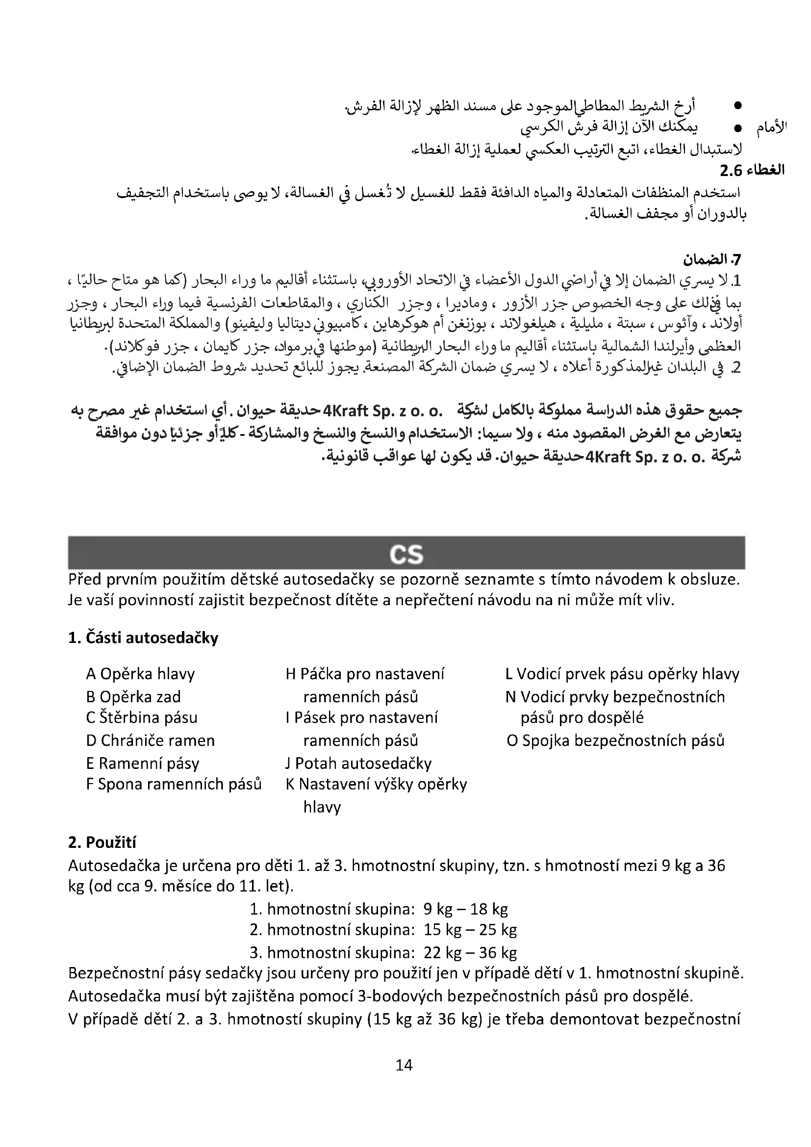 Veškerá práva k tomuto vypracování patří v celku 4Kraft Sp. z o.o. Jejich jakékoli neoprávněné použití, které je v rozporu s jejich určením, zejména: používání, kopírování, množení, sdílení - zejména nebo v části bez souhlasu 4Kraft Sp. z o.o. může mít za následek následky právní povahy.21 Bitte lesen Sie vor der ersten Benutzung des Auto-Kindersitzes diese Bedienungsanleitung sorgfältig durch. Es ist Ihre Pflicht, die Sicherheit des Kindes zu gewährleisten und das Nichtlesen dieser Bedienungsanleitung kann diese Sicherheit beeinflussen.