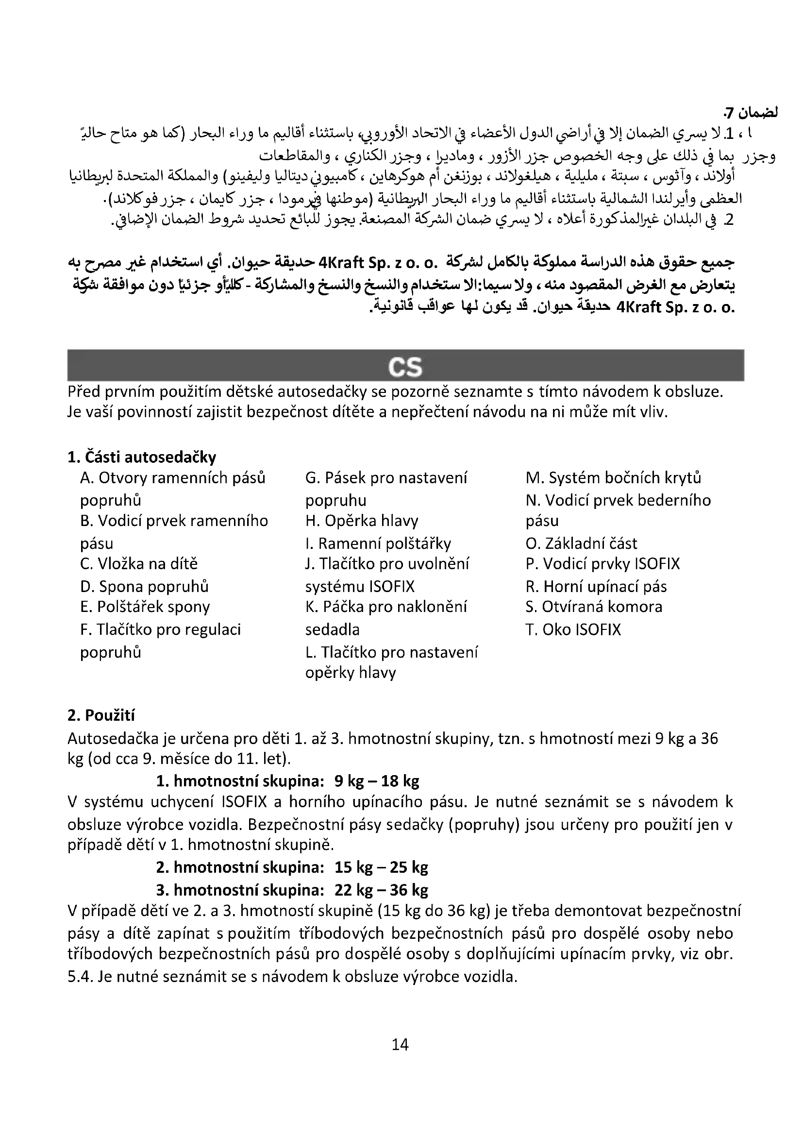 4Kraft Sp. z o. o. Před prvním použitím dětské autosedačky se pozorně seznamte s tímto návodem k obsluze. Je vaší povinností zajistit bezpečnost dítěte a nepřečtení návodu na ni může mít vliv.