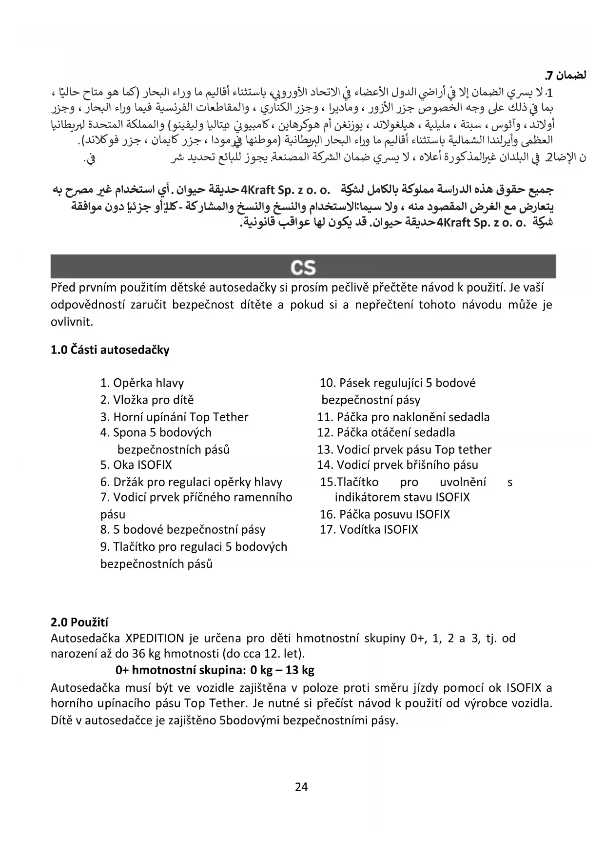 1. Na všechny Výrobky Kinderkraft se vztahuje záruka 24 měsíců. Období záruční ochrany