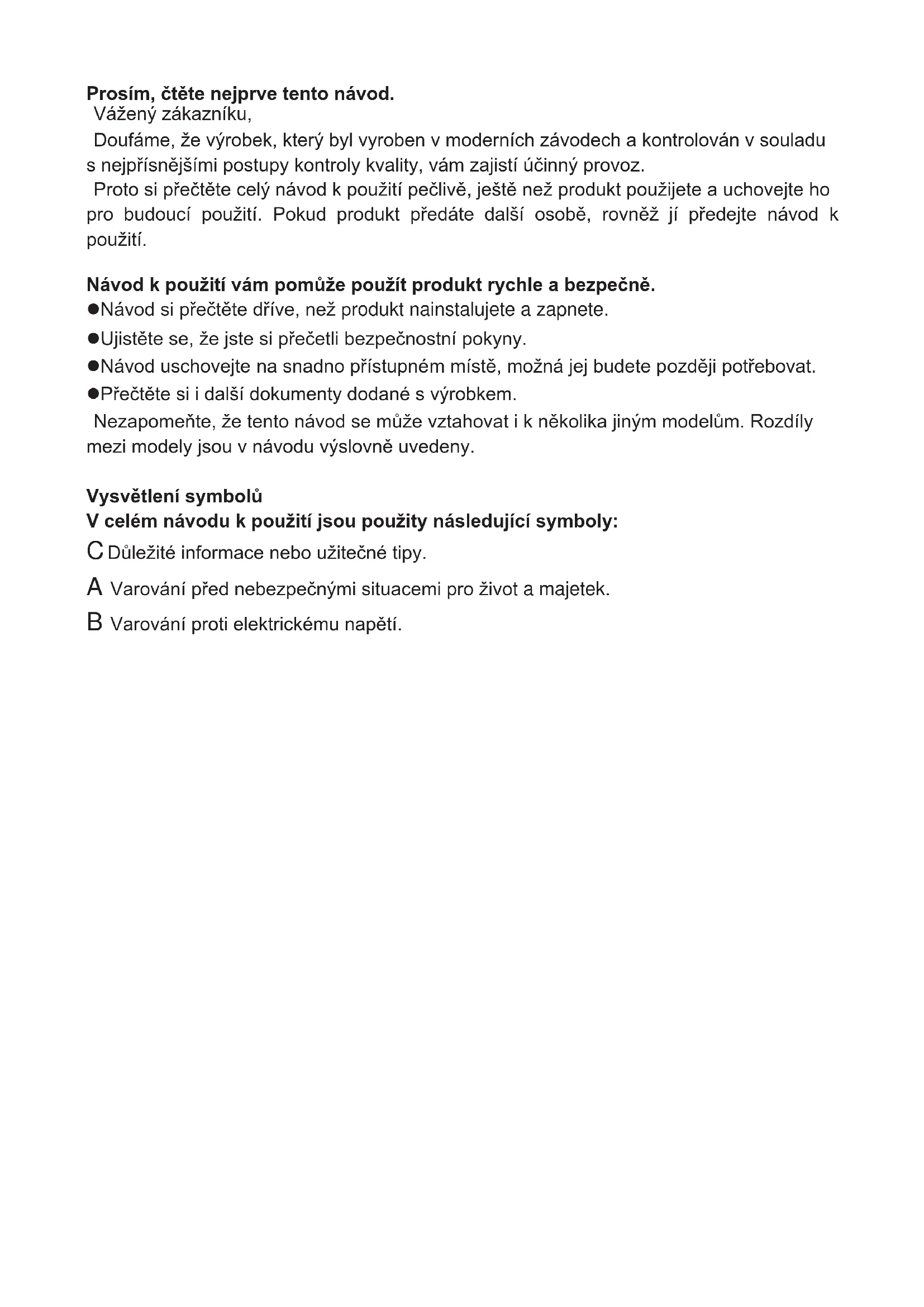C Obrázky uvedené v tomto návodu k použití jsou schematické a nemusejí přesně odpovídat vašemu produktu. Pokud zobrazené části nejsou obsaženy v produktu, který jste zakoupili, jde o součásti jiných modelů. 3 CZ