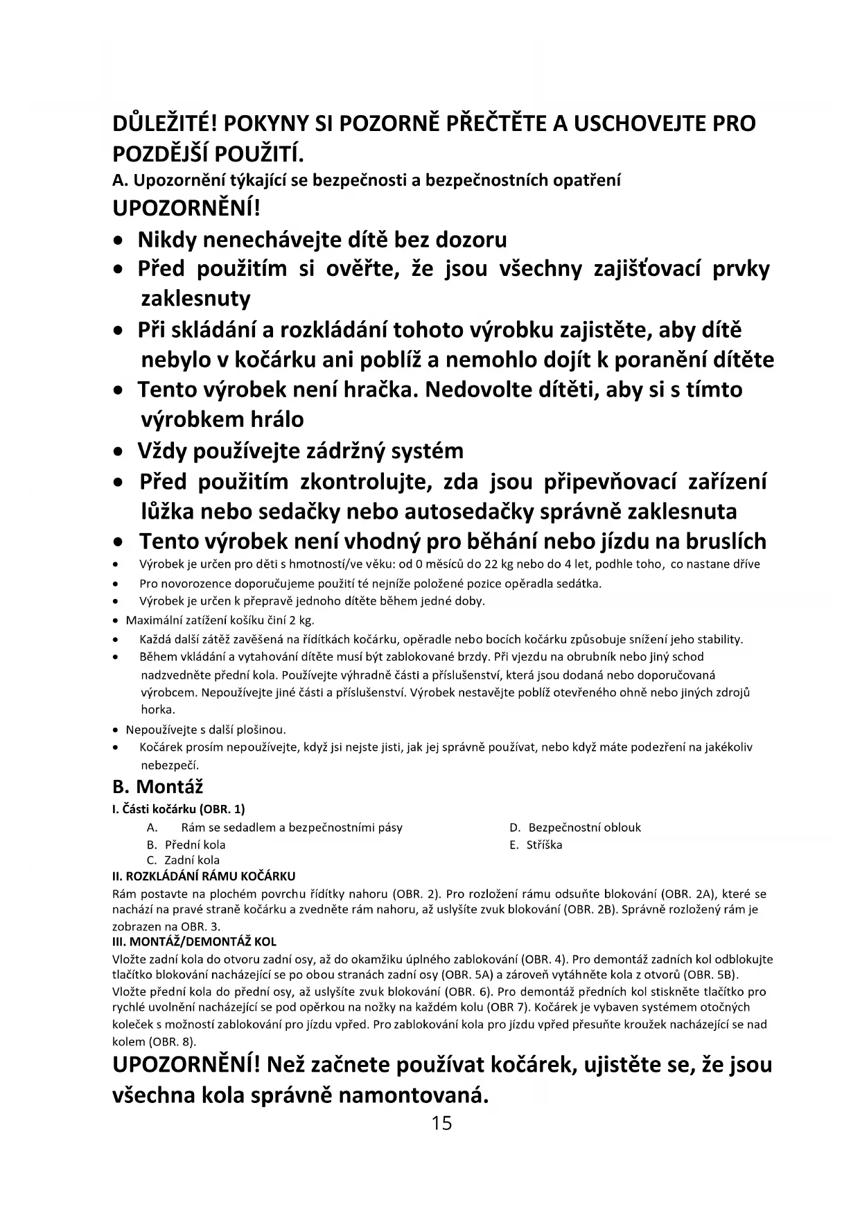 Vážení zákazníci! Děkujeme za zakoupení výrobku značky Kinderkraft. Naše výrobky byly vyrobeny s důrazem na bezpečnost a pohodlí vašeho dítěte. Kočárek je ideálním řešením pro ty, kteří si cení kvalitu, moderní vzhled a funkcionalitu. Seznamte se prosím s obsahem návodu k obsluze a dodržujte jeho pokyny.15 DŮLEŽITÉ! POKYNY SI POZORNĚ PŘEČTĚTE A USCHOVEJTE PRO POZDĚJŠÍ POUŽITÍ. A. Upozornění týkající se bezpečnosti a bezpečnostních opatření UPOZORNĚNÍ!