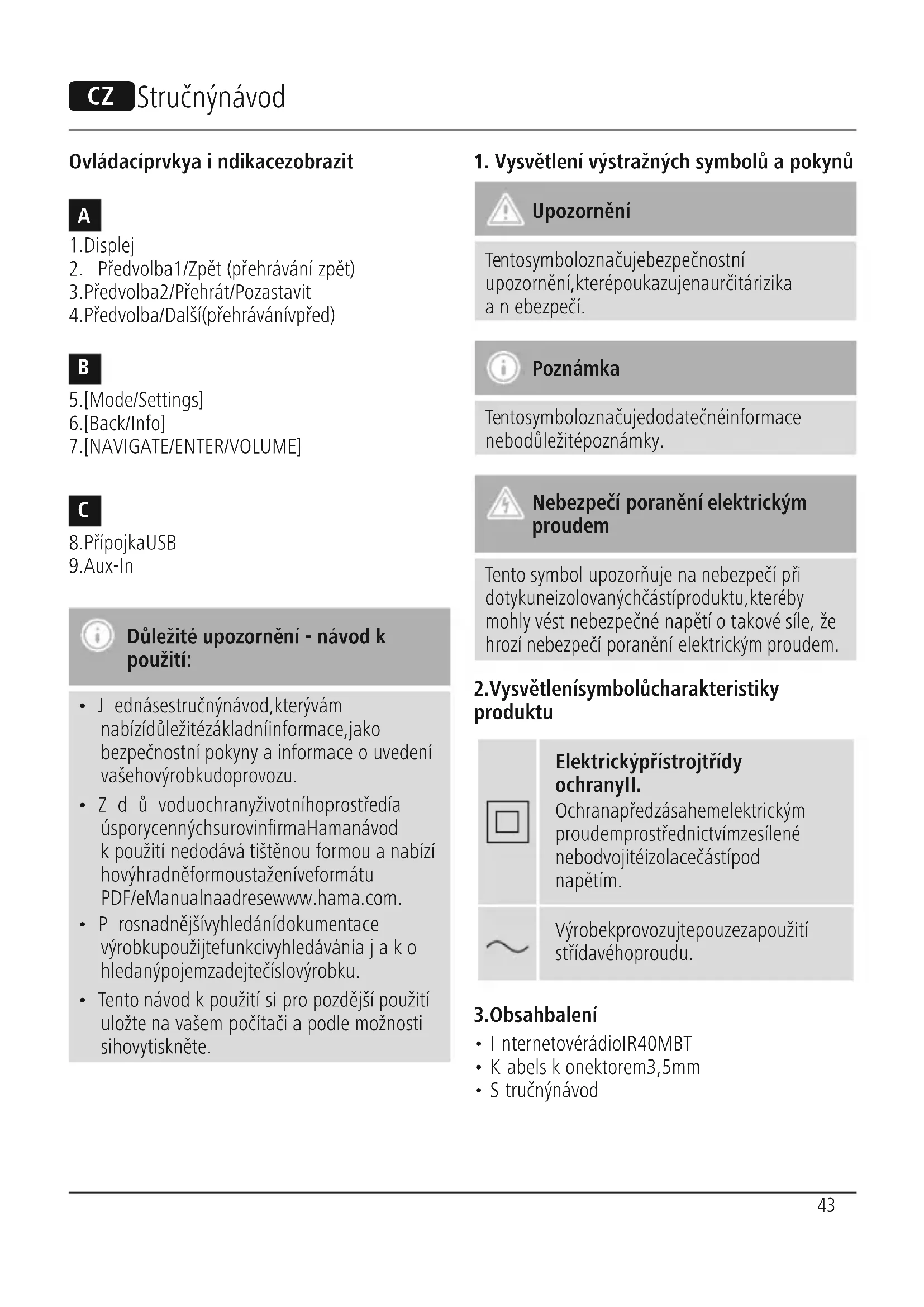 NÁVOD K OBSLUZE IR40MBT HAMA