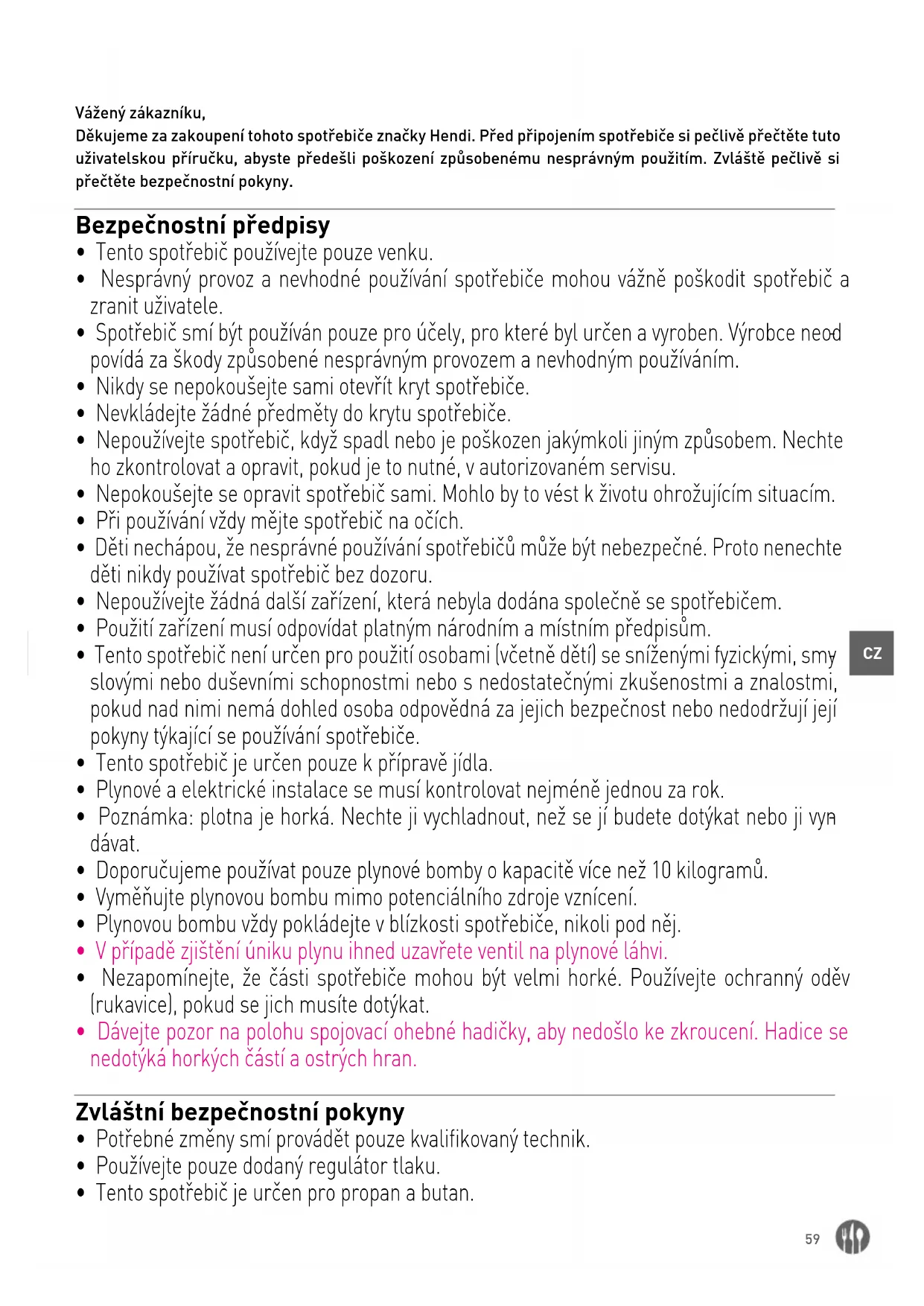 Vážený zákazníku, Děkujeme za zakoupení tohoto spotřebiče značky Hendi. Před připojením spotřebiče si pečlivě přečtěte tuto uživatelskou příručku, abyste předešli poškození způsobenému nesprávným použitím. Zvláště pečlivě si přečtěte bezpečnostní pokyny. Bezpečnostní předpisy