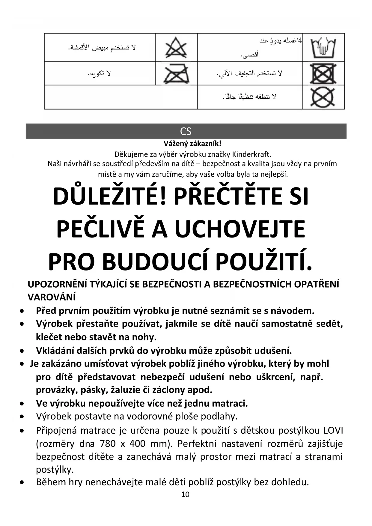 Vážený zákazník! Děkujeme za výběr výrobku značky Kinderkraft. Naši návrháři se soustředí především na dítě – bezpečnost a kvalita jsou vždy na prvním místě a my vám zaručíme, aby vaše volba byla ta nejlepší. DŮLEŽITÉ! PŘEČTĚTE SI