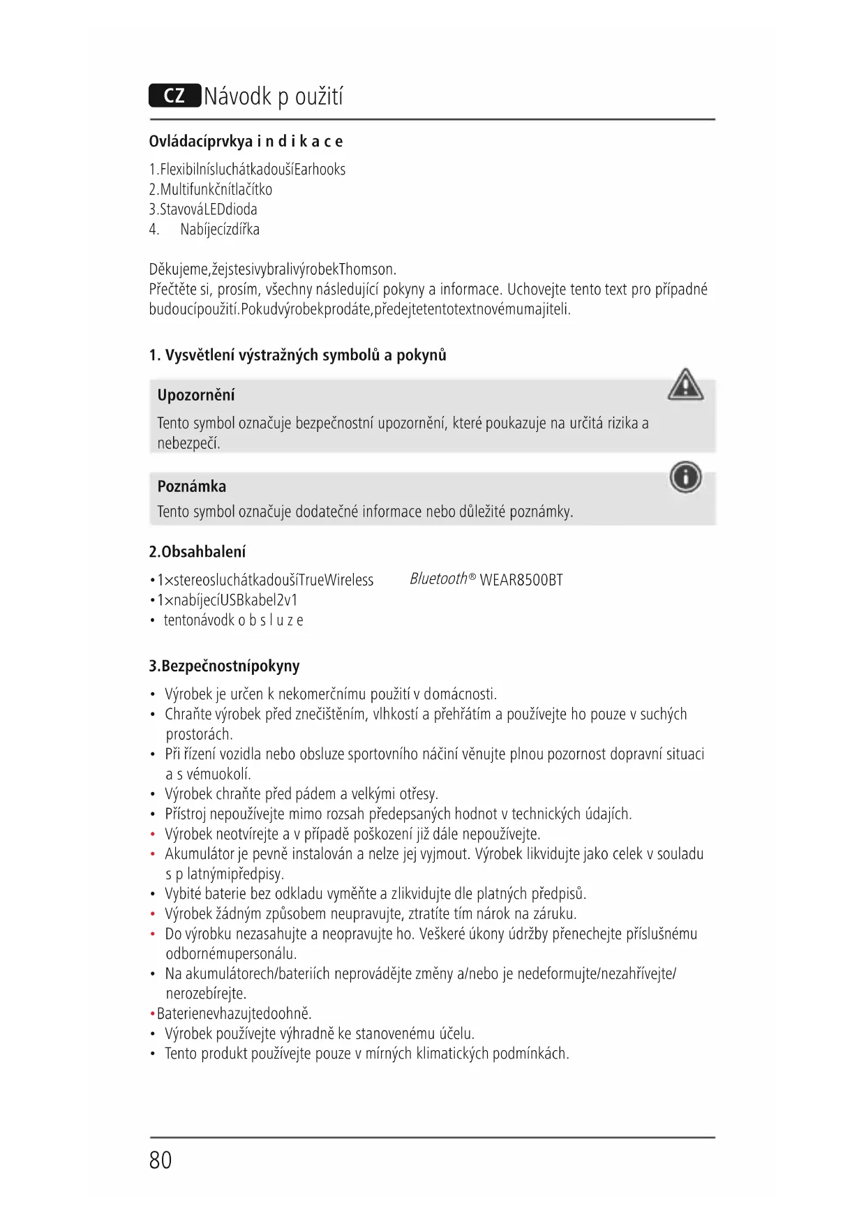 NÁVOD K OBSLUZE WEAR8500BT THOMSON