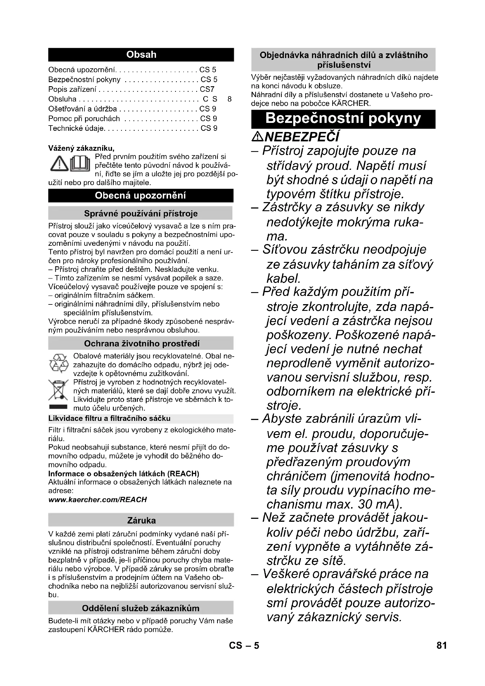 WD 3 Car - Vysavač Kärcher - Bezplatný návod k obsluze