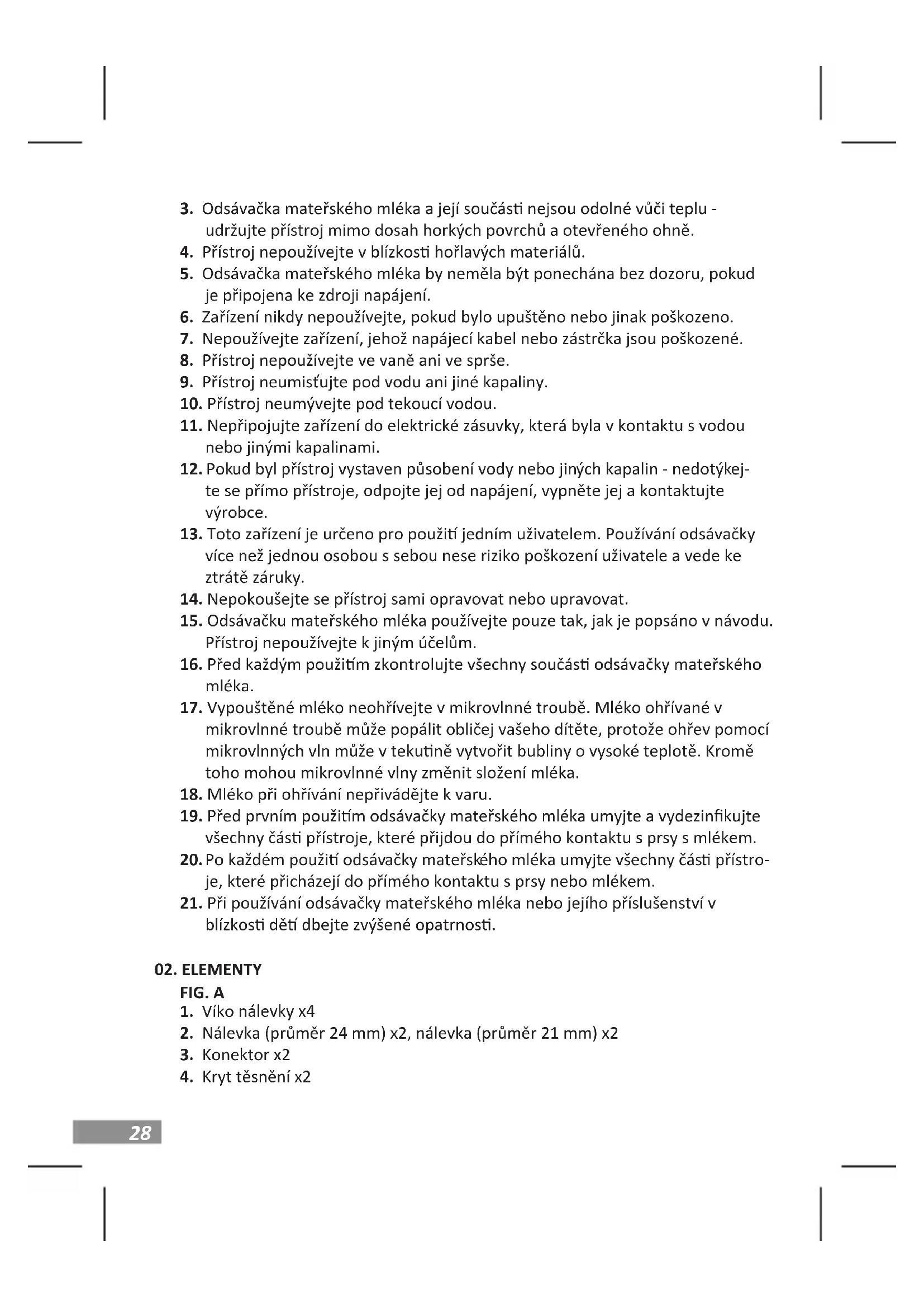 20. Po každém použi odsávačky mateřského mléka umyjte všechny čás přístro-