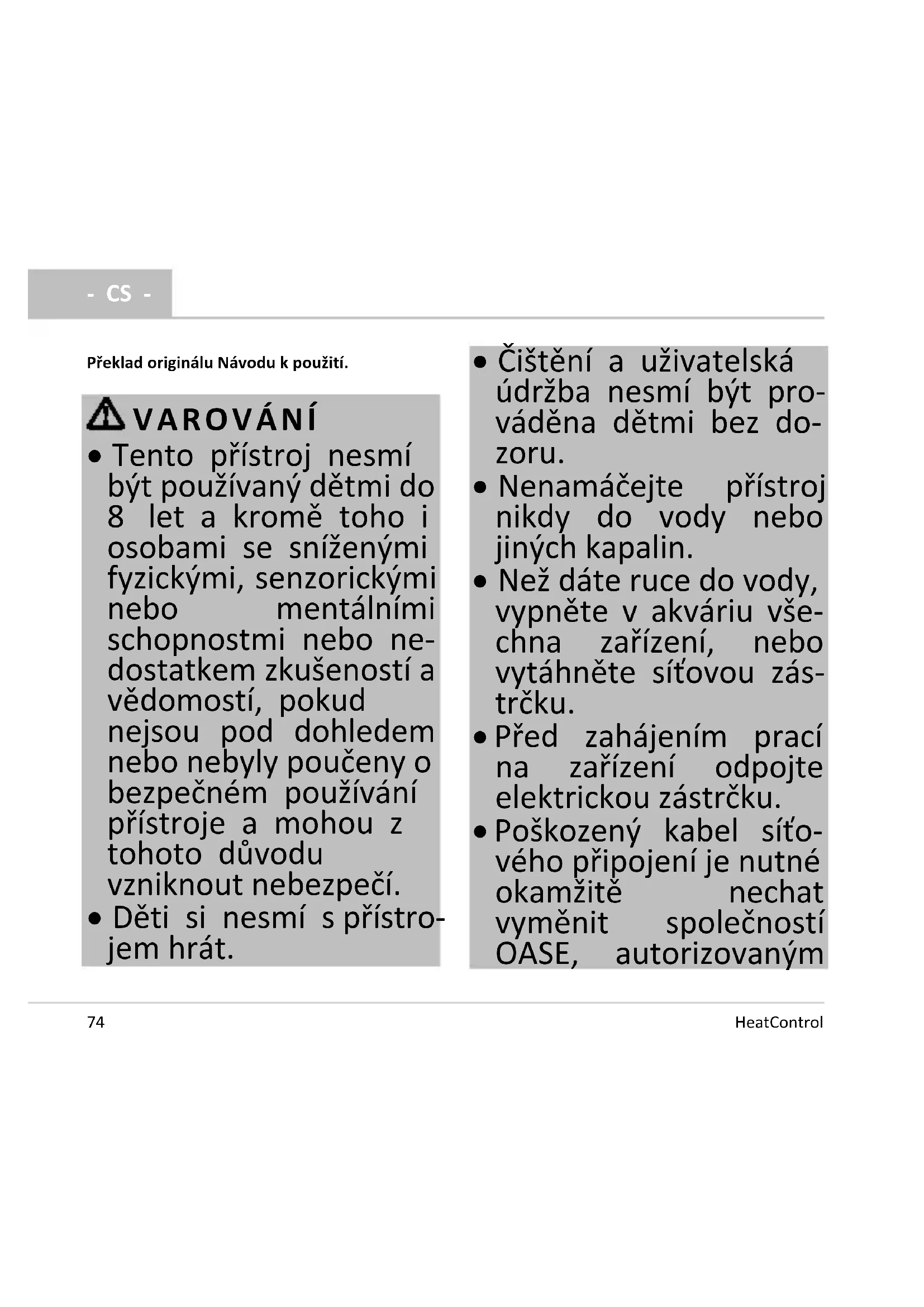 - CS - Překlad originálu Návodu k použití. VAROVÁNÍ
