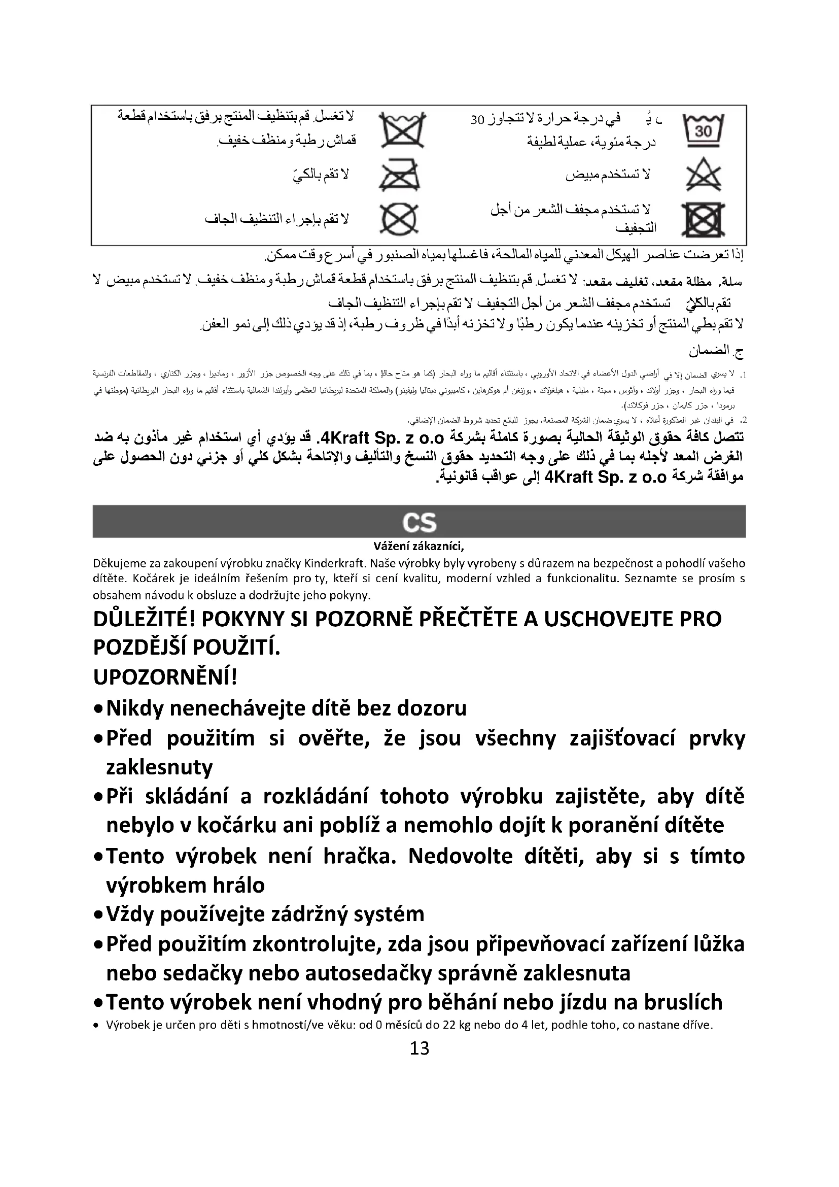 9. Úplný obsah záručních podmínek je k dispozici na webových stránkách WWW.KINDERKRAFT.COM