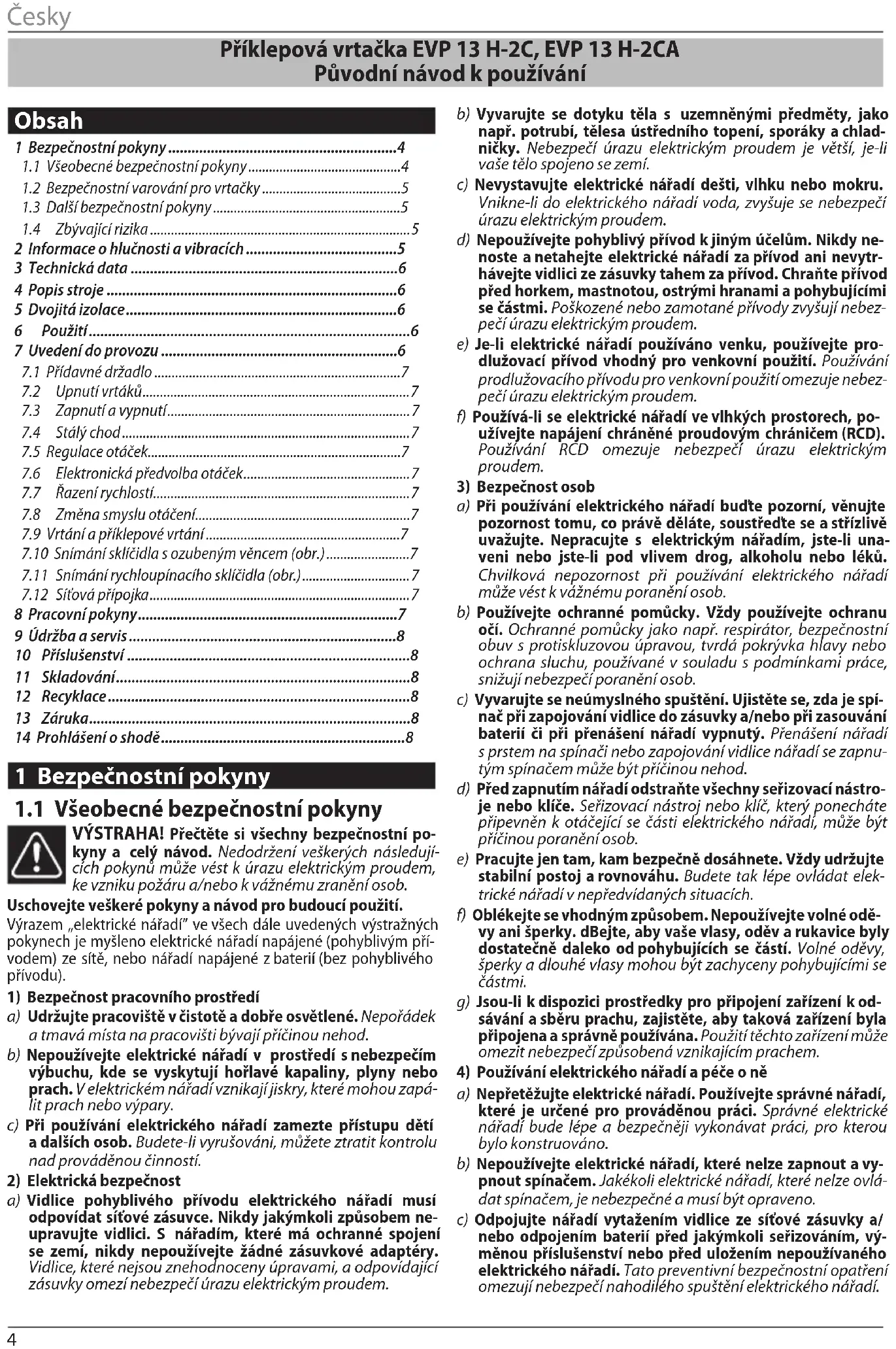 Příklepová vrtačka EVP13H-2C, EVP13H-2CA Původní návod kpoužívání Obsah 1 Bezpečnostní pokyny ...........................................................4