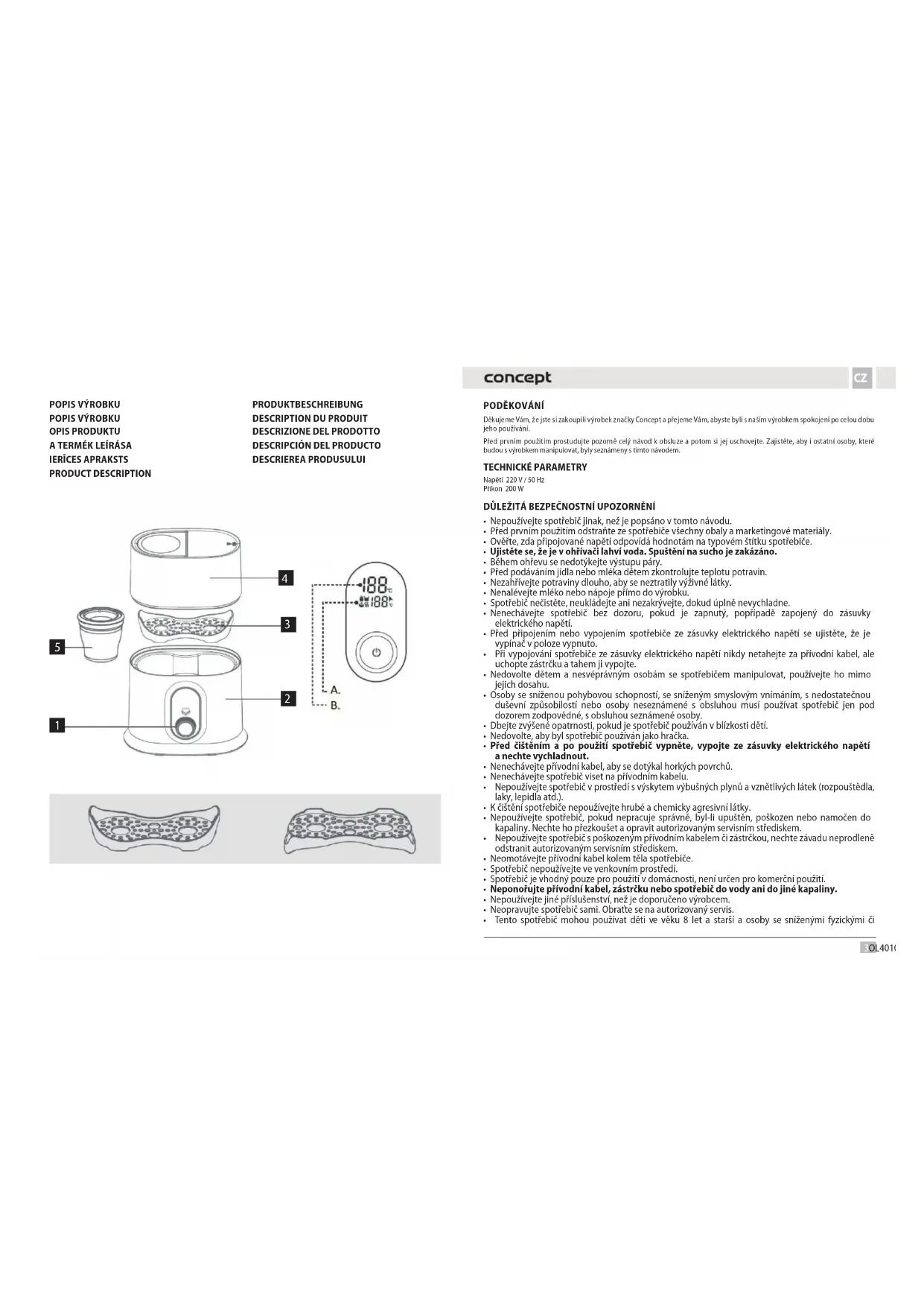 OL4010 - Ohřívač lahví Concept - Bezplatný návod k obsluze