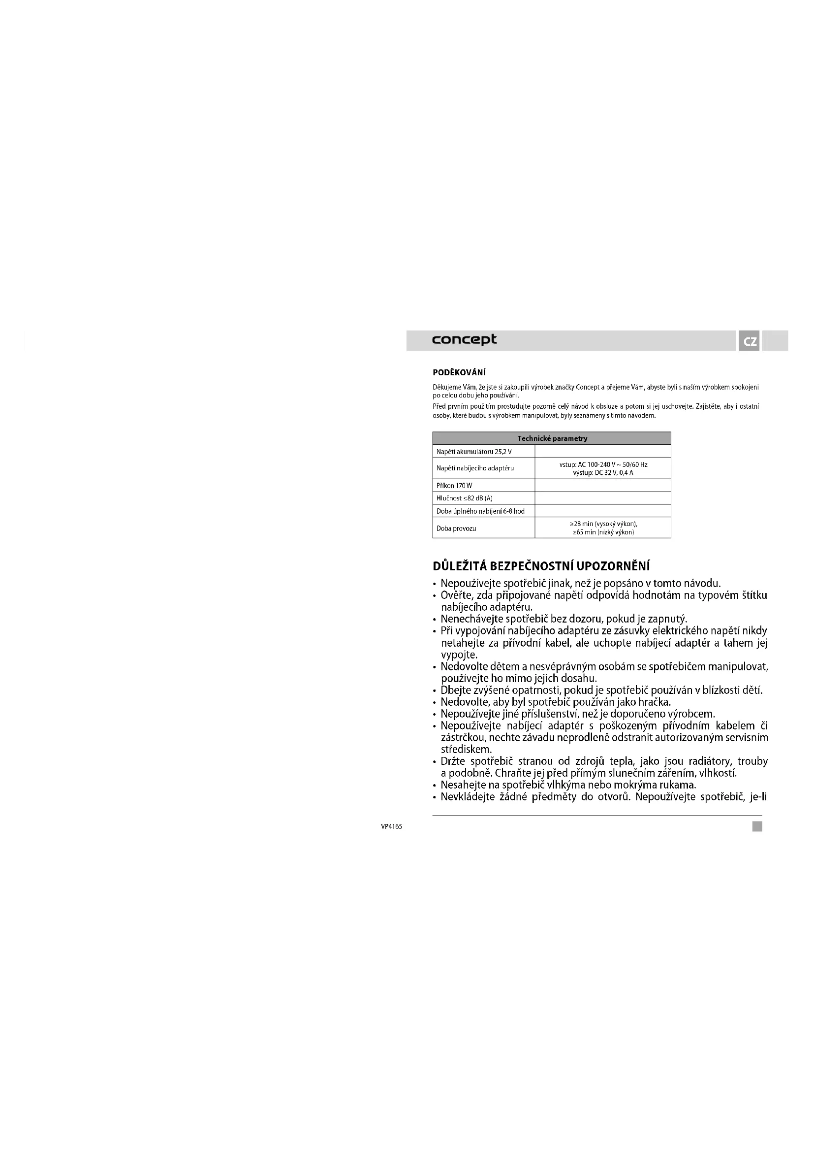 NÁVOD K OBSLUZE VP4165 Concept