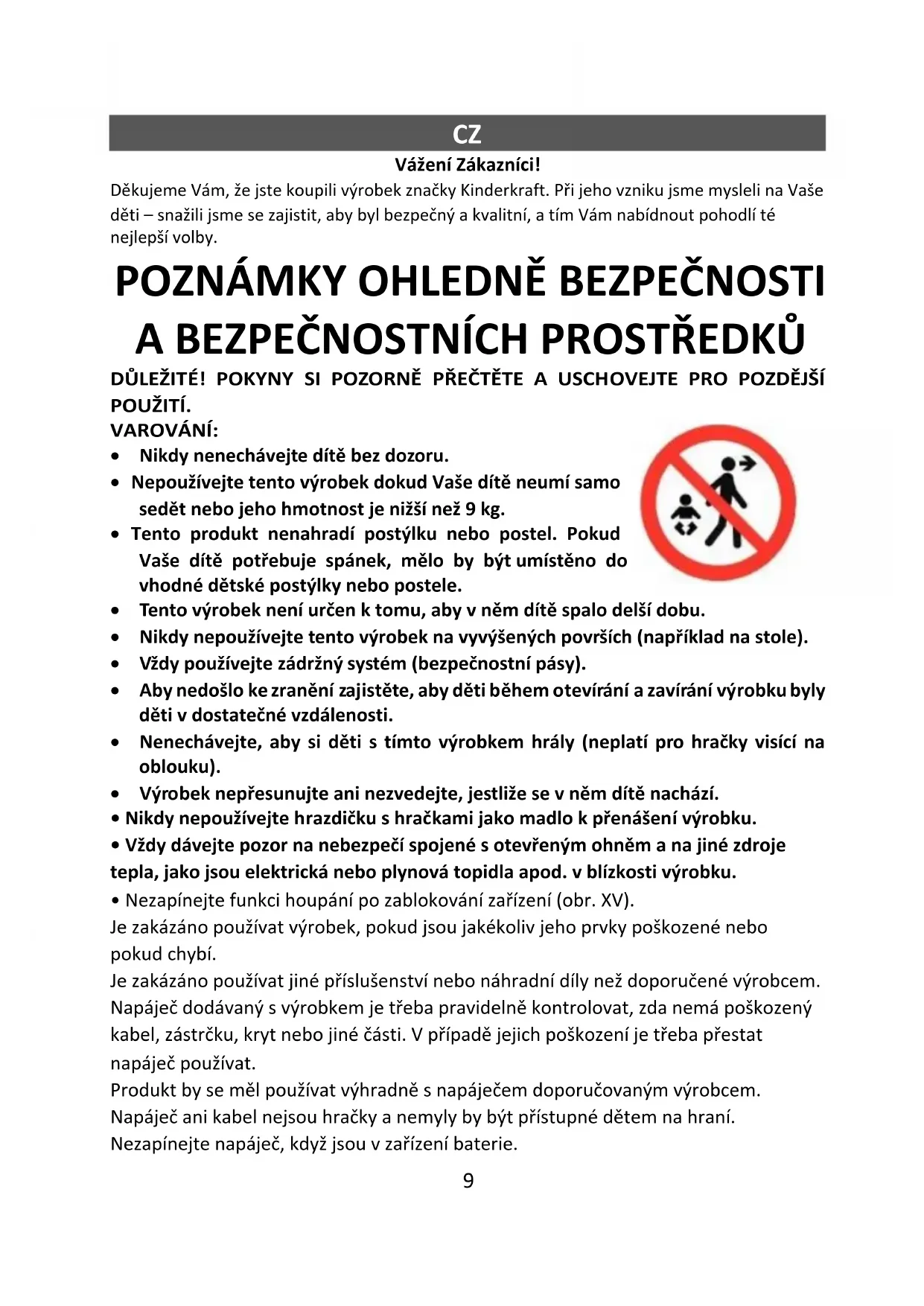 - Tento produkt nenahradí postýlku nebo postel. Pokud Vaše dítě potřebuje spánek, mělo by být umístěno do vhodné dětské postýlky nebo postele.