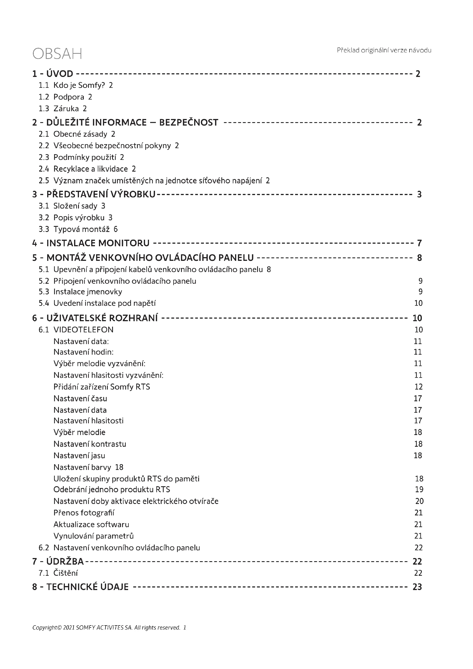 Překlad originální verze návodu2 Copyright © 2021 SOMFY ACTIVITES SA. All rights reserved. CS Videotelefon V®350