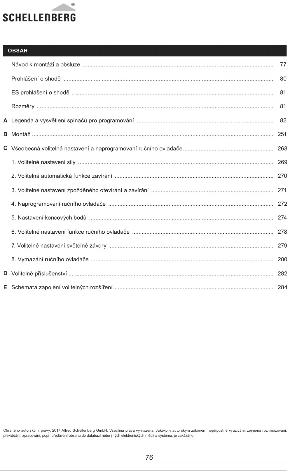 Chráněno autorskými právy, 2017 Alfred Schellenberg GmbH. Všechna práva vyhrazena. Jakékoliv autorským zákonem nepřípustné využívání, zejména rozmnožování, překládání, zpracování, popř. předávání obsahu do databází nebo jiných elektronických médií a systémů, je zakázáno.