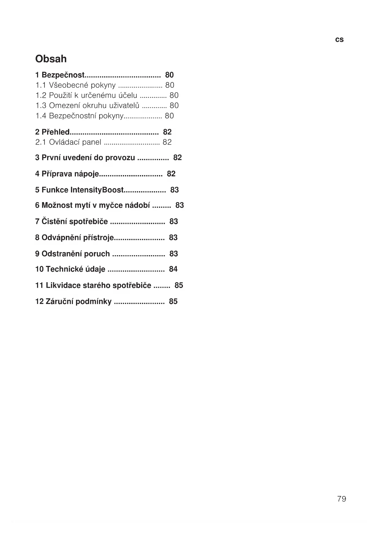- 12 Záruční podmínky cs Bezpečnost p. 85