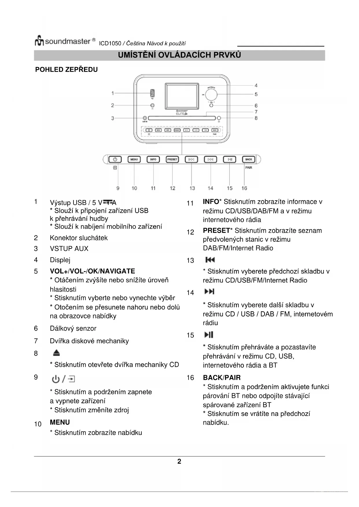 NÁVOD K OBSLUZE ICD1050 Soundmaster
