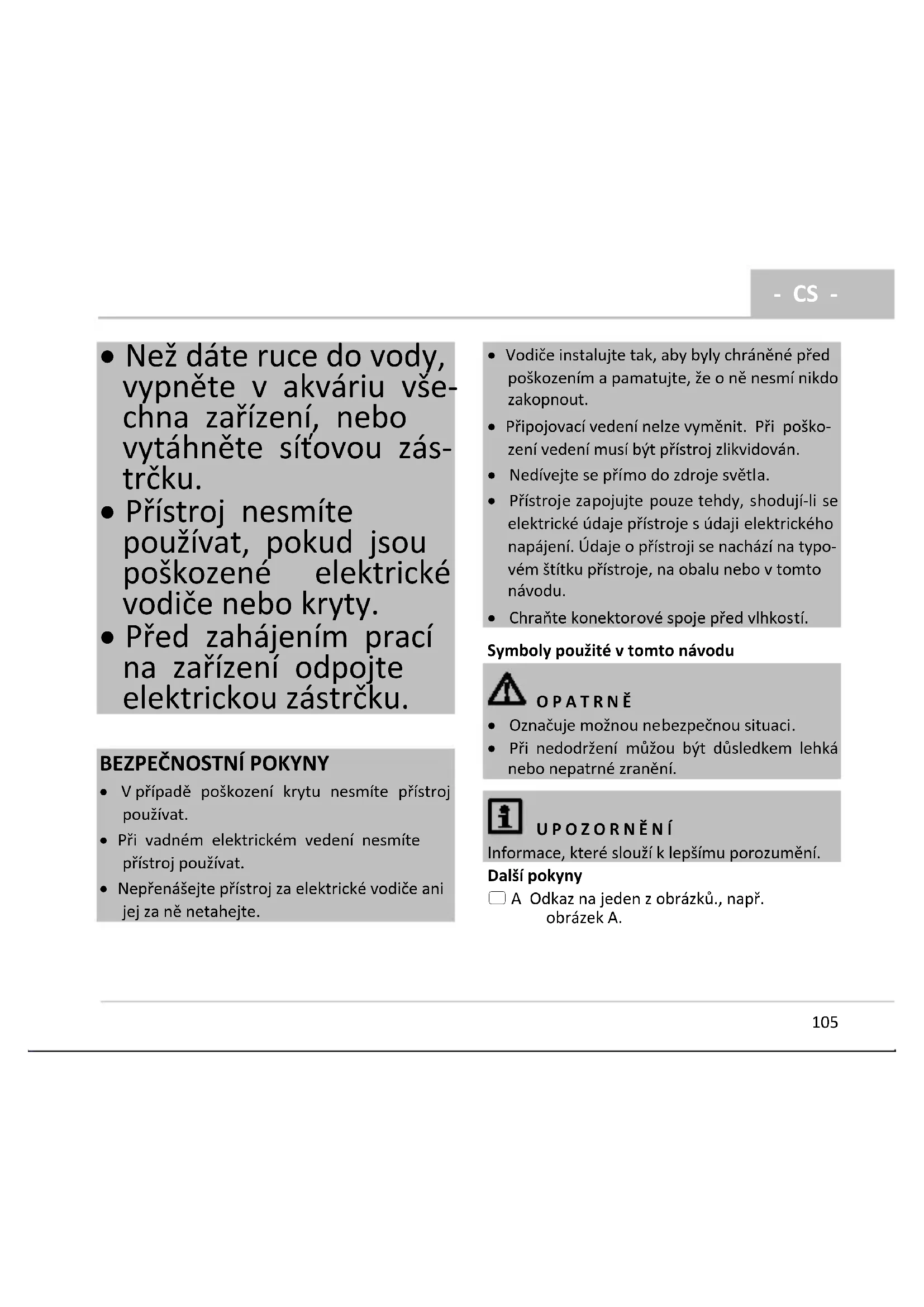 - Při nedodržení můžou být důsledkem lehká nebo nepatrné zranění. UPOZORNĚNÍ Informace, které slouží k lepšímu porozumění. Další pokyny A Odkaz na jeden z obrázků., např. obrázek A.- CS -