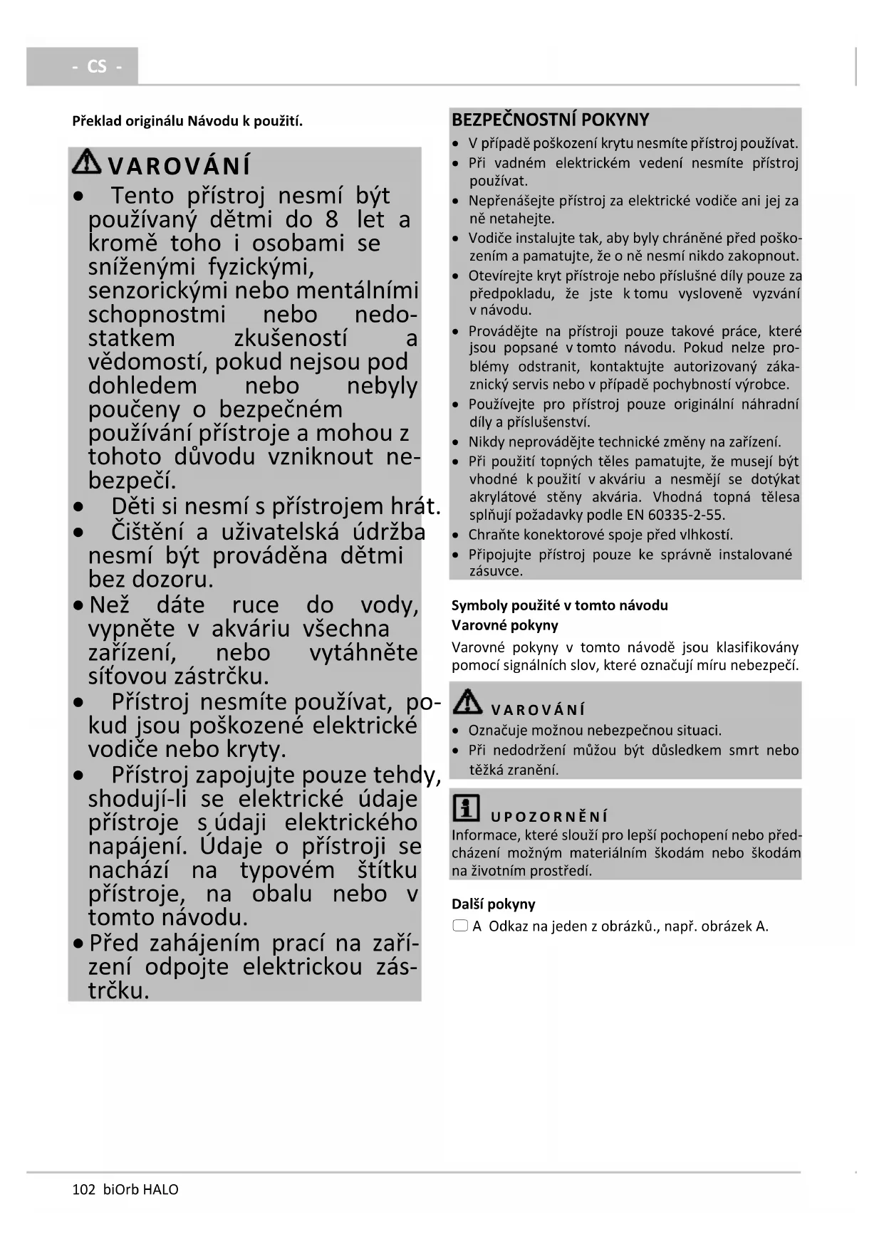 CS - Překlad originálu Návodu k použití. VAROVÁNÍ