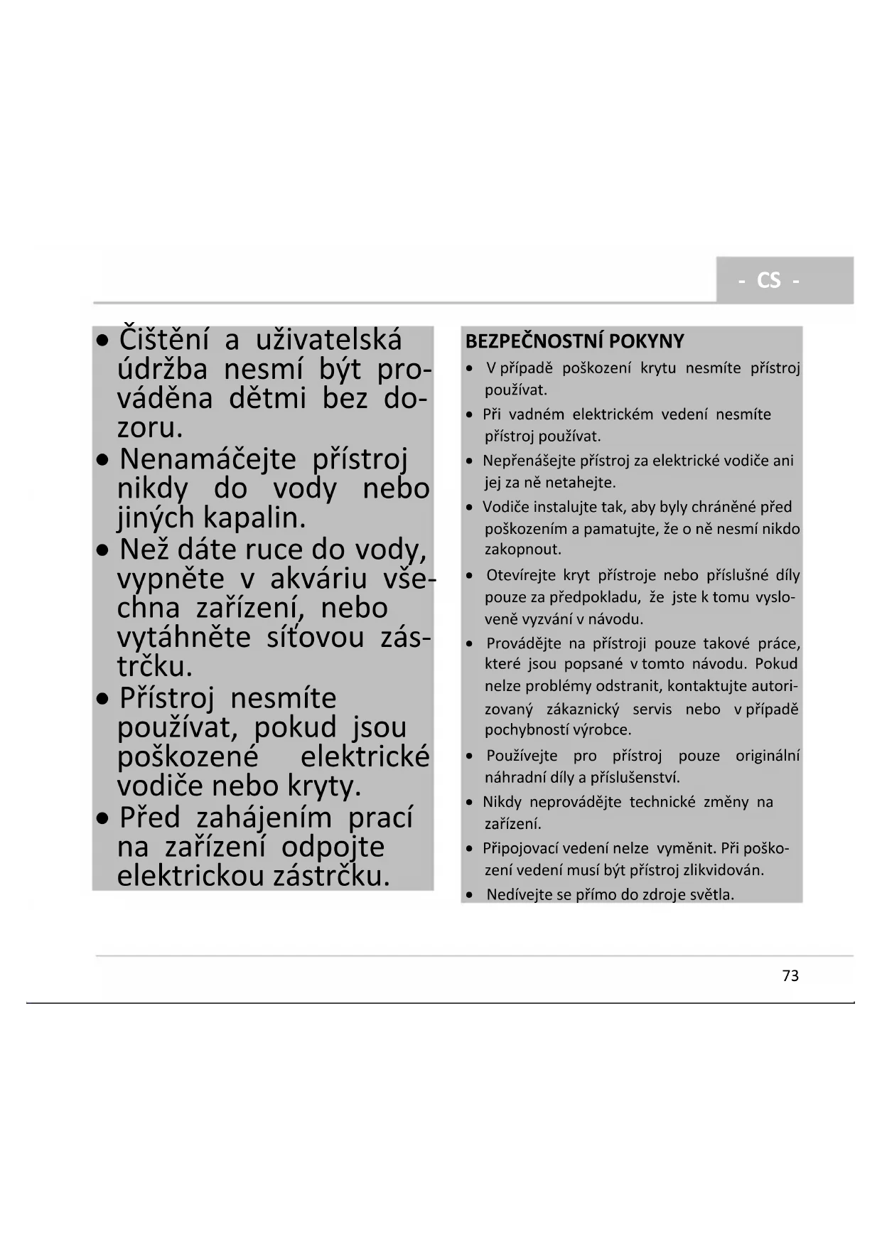 - Než dáte ruce do vody, vypněte v akváriu vše- chna zařízení, nebo vytáhněte síťovou zás- trčku.
