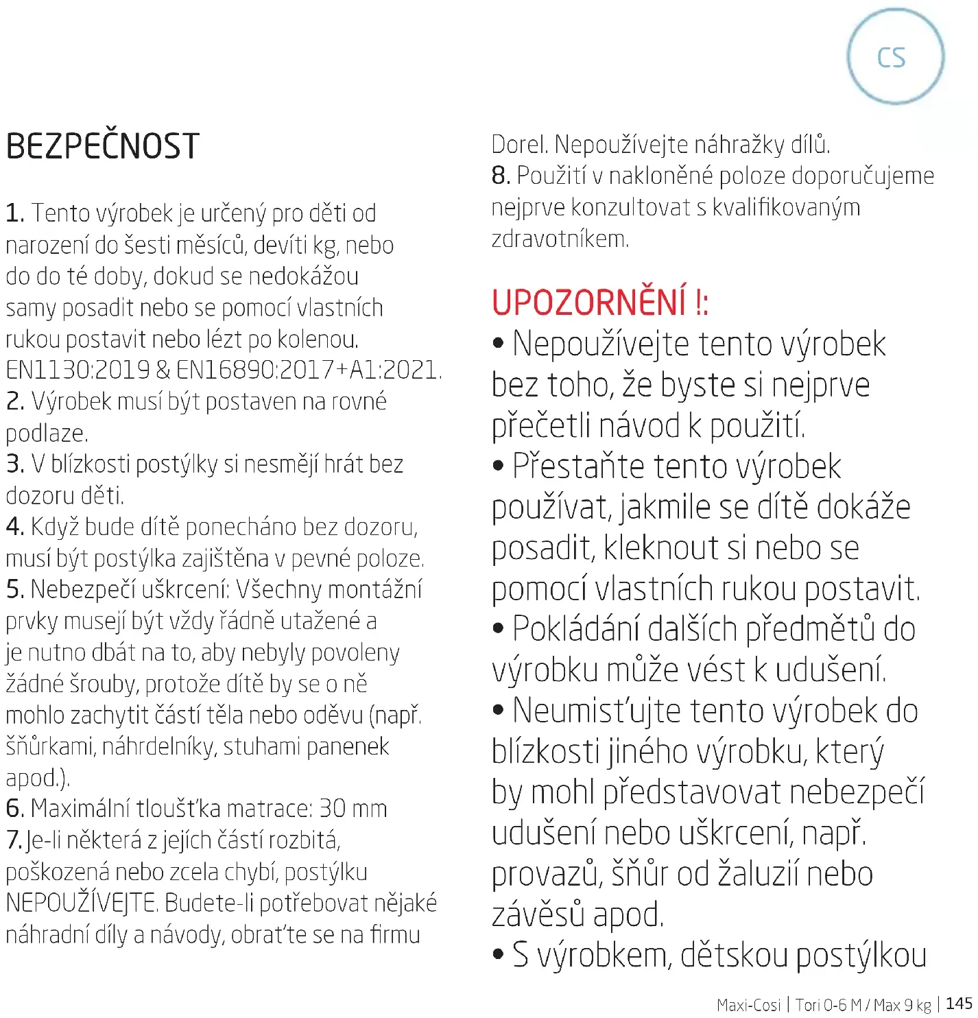 - Přečtěte si prosím pokyny k mytí čalounění uvedené na štítku. Ochrana životního prostředí Z důvodu ochrany životního prostředí výrobek po ukončení používání zlikvidujte v příslušném místě pro likvidaci odpadu v souladu s národními právními předpisy. Dotazy Prosím kontaktujte svého místního distributora nebo navštivte naše webové stránky: - Sériové číslo - Věk (výška) a váha dítěte. CS148