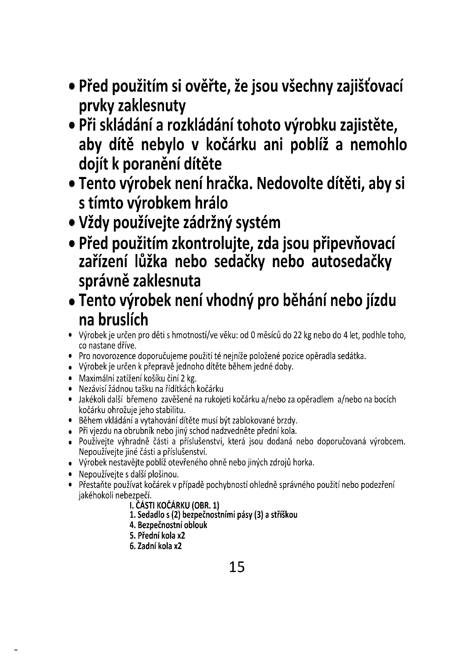 I. ČÁSTI KOČÁRKU (OBR. 1)