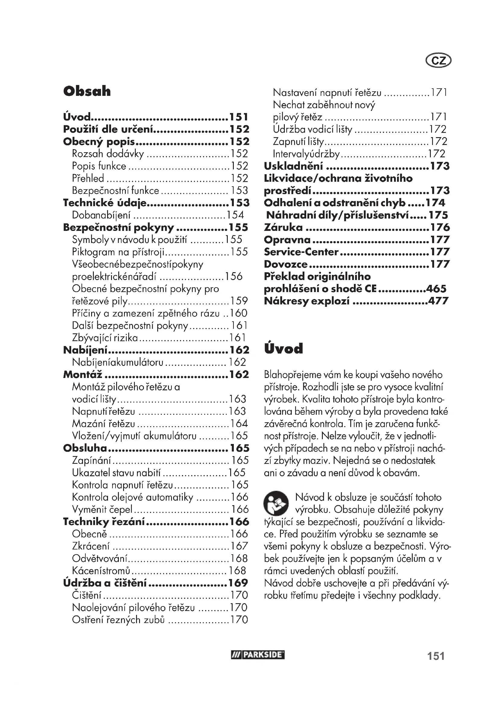 - Obecné bezpečnostní pokyny pro řetězové pily p. 159