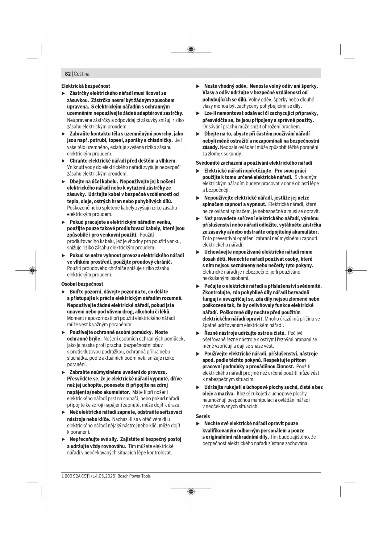 Úroveň vibrací aúroveň hluku, které jsou uvedené vtěchto pokynech, byly změřeny pomocí normované měřicí metody alze je použít pro vzájemné porovnání elektronářadí. Hodí se ipro předběžný odhad zatížení vibracemi ahlukem. Uvedená úroveň vibrací aúroveň hluku reprezentuje hlavní použití elektronářadí. Pokud se ovšem bude elektronářadí používat pro jiné práce, sjinými nástroji nebo snedostatečnou údržbou, může se úroveň hluku aúroveň vibrací lišit. To může zatížení vibracemi ahlukem po celou pracovní dobu zřetelně zvýšit. Pro přesný odhad zatížení vibracemi ahlukem by měly být zohledněny idoby, kdy je nářadí vypnuté nebo běží, ale ve skutečnosti se nepoužívá. To může zatížení vibracemi ahlukem po celou pracovní dobu výrazně snížit. Stanovte dodatečná bezpečnostní opatření kochraně obsluhy před účinky vibrací, jako je např. údržba elektronářadí anástrojů, udržování teplých rukou, organizace pracovních procesů. Montáž u Před každou prací na elektronářadí vytáhněte zástrčku ze zásuvky. Výměna nástroje u Při vkládání avýměně fréz doporučujeme nosit ochranné rukavice. Originální frézy zrozsáhlého programu příslušenství Bosch obdržíte ve specializovaných obchodech. Demontáž frézovacího koše (viz obrázek A) Než můžete nasadit frézu, musíte nejprve odpojit frézovací koš(2) od hnací jednotky(1). Povolte křídlový šroub (12) na frézovacím koši (2). Vytáhněte nahoru hnací jednotku. Výměna upínací kleštiny (viz obrázek B) Vzávislosti na použité fréze musíte před nasazením frézy vyměnit převlečnou matici skleštinou(8). Pokud je již namontovaná správná kleština pro příslušnou frézu, postupujte podle pracovních kroků vnásledující části. Upínací kleština(16) musí být vpřevlečné matici usazená smalou vůlí. Převlečnou matici(8) musí být možné snadno namontovat. Pokud by převlečná matice nebo upínací kleština byly poškozené, ihned je vyměňte. Nasaďte stranový klíč(18) na upínání nástroje(17) (viz obrázekC1). Stranovým klíčem(19) odšroubujte proti směru hodinových ručiček převlečnou matici(8). Je-li to nutné, očistěte před sestavením všechny montované díly měkkým štětcem nebo vyfoukáním stlačeným vzduchem. Nasaďte novou převlečnou matici na upínání nástroje(17). Převlečnou matici volně dotáhněte. u Dokud není namontovaná fréza, upínací kleštinu spřevlečnou maticí vžádném případě neutahujte. Upínací kleština by se jinak mohla poškodit. Nasazení frézy (viz obrázky C1 – C2) Podle účelu použití jsou kdispozici frézy vnejrůznějších provedeních ajakostech. Frézy zvysoce výkonné rychlořezné oceli (HSS) jsou vhodné pro frézování měkkých materiálů, jako např. měkkého dřeva aplastu. Frézy sbřity ztvrdokovu (HM) jsou speciálně vhodné pro tvrdé aabrazivní materiály, jako např. tvrdé dřevo ahliník. Originální frézy zrozsáhlého programu příslušenství Bosch obdržíte ve specializovaných obchodech. Používejte pouze bezvadné ačisté frézy. Montáž frézovacího koše (viz obrázekA) Pro frézování musíte na hnací jednotku (1) znovu namontovat frézovací koš(2). Povolte křídlový šroub (12) na frézovacím koši (2). Zasuňte hnací jednotku (1) do frézovacího koše (2). Utáhněte křídlový šroub (12) na frézovacím koši (2). Upozornění: Křídlový šroub (12) ašroub srýhovanou hlavou (6) lze navzájem zaměnit. u Po montáži vždy zkontrolujte, zda hnací jednotka pevně sedí ve frézovacím koši. Odsávání prachu/třísek Prach zmateriálů, jako jsou nátěry sobsahem olova, některé druhy dřeva, minerály akov, může být zdraví škodlivý. Kontakt sprachem nebo vdechnutí mohou upracovníka nebo osob nacházejících se vblízkosti vyvolat alergické reakce a/nebo onemocnění dýchacích cest. Určitý prach, jako dubový nebo bukový prach, je pokládán za karcinogenní, zvláště ve spojení spřídavnými látkami pro ošetření dřeva (chromát, ochranné prostředky na dřevo). Materiál obsahující azbest smějí opracovávat pouze specialisté. – Pokud možno používejte pro daný materiál vhodné odsávání prachu. – Zajistěte dobré větrání pracoviště. 1 609 92A C9T | (14.05.2025) Bosch Power ToolsČeština | 85 – Je doporučeno nosit ochrannou dýchací masku střídou filtruP2. Dodržujte předpisy pro obráběné materiály platné vpříslušné zemi. u Zabraňte hromadění prachu na pracovišti. Prach se může lehce vznítit. Připojení odsávání prachu (vizobrázekI) Nasaďte adaptér pro odsávání prachu (11) zpředu do elektrického nářadí. Slyšitelně zaskočí. Kodejmutí uchopte adaptér (11) na bocích astáhněte jej dopředu. Nasaďte odsávací hadici (Ø35mm)(28) (příslušenství) na namontovaný odsávací adaptér (27). Připojte odsávací hadici(28) kvysavači (příslušenství). Vysavač musí být vhodný pro frézovaný materiál. Při odsávání obzvlášť zdraví škodlivého, karcinogenního nebo suchého prachu použijte speciální vysavač. Provoz u Dbejte na správné síťové napětí! Napětí zdroje proudu musí souhlasit súdaji na typovém štítku elektrického nářadí. Elektrické nářadí označené 230V smí být provozováno ina 220V. Nastavení hloubky frézování u Nastavení hloubky frézování se smí provádět pouze při vypnutém elektronářadí. – Nasaďte elektrické nářadí snamontovanou frézou na frézovaný obrobek. – Povolte znovu křídlový šroub (12) na frézovacím koši (2), abyste nastavili požadovanou hloubku frézování na příslušné stupnici pro nastavení (15) buď ručně, nebo se šroubem srýhovanou hlavou (6). – Utáhněte křídlový šroub(12) na frézovacím koši(2). – Zkontrolujte p