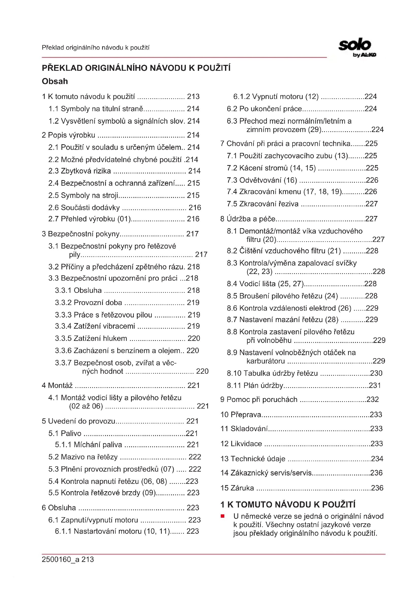 6646 - Pila SOLO - Bezplatný návod k obsluze