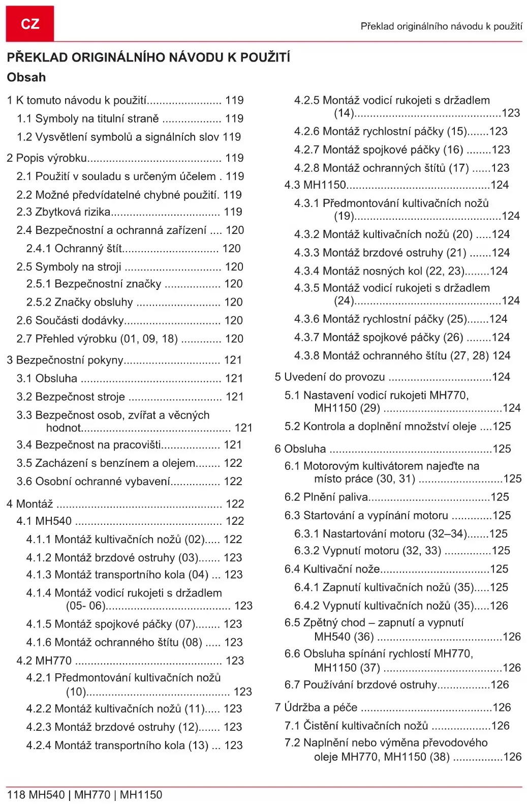 oleje MH770, MH1150 (38) ................126443277_b 119 K tomuto návodu k použití