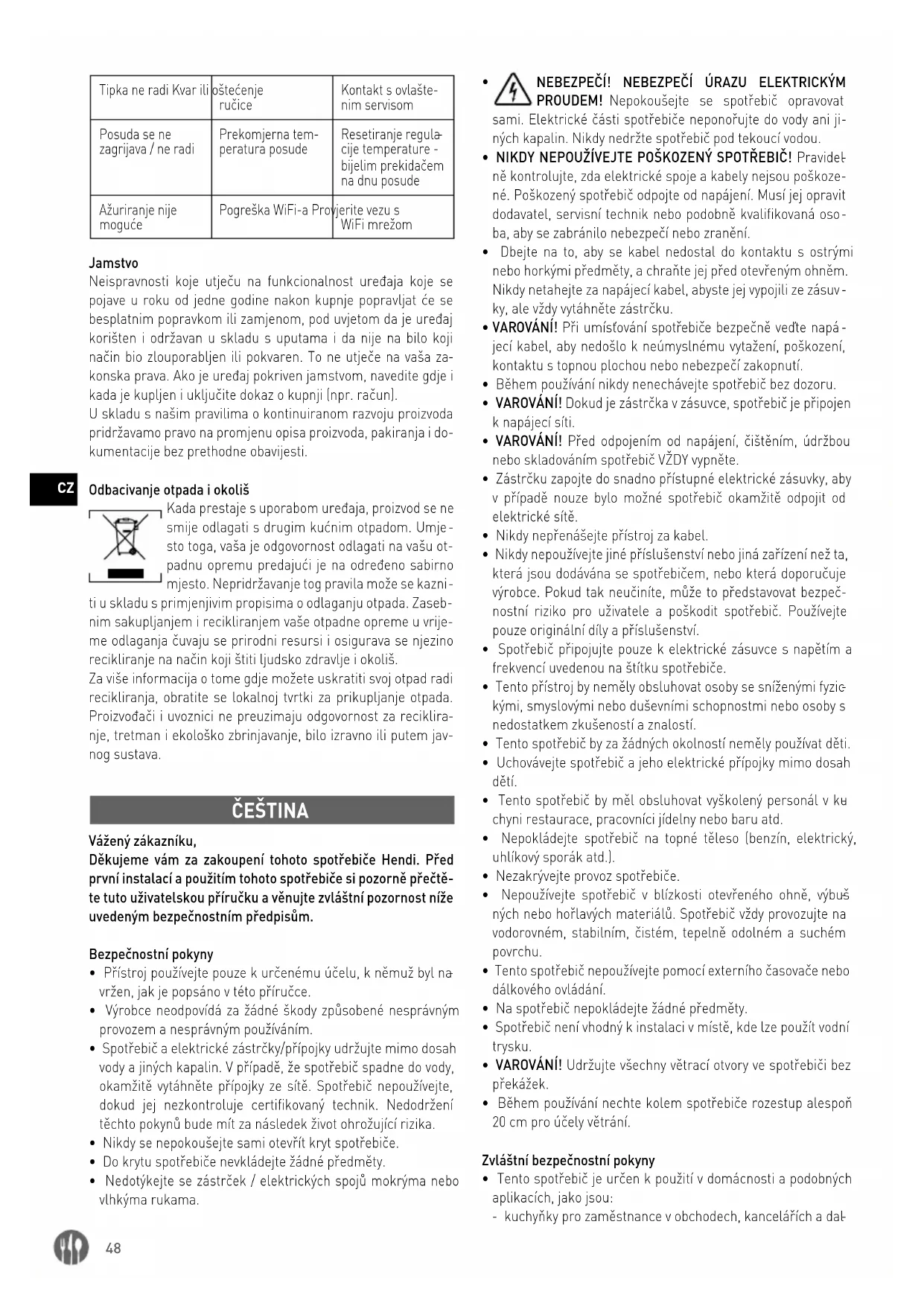 nje, tretman i ekološko zbrinjavanje, bilo izravno ili putem jav- nog sustava. ČEŠTINA Vážený zákazníku, Děkujeme vám za zakoupení tohoto spotřebiče Hendi. Před první instalací a použitím tohoto spotřebiče si pozorně přečtě