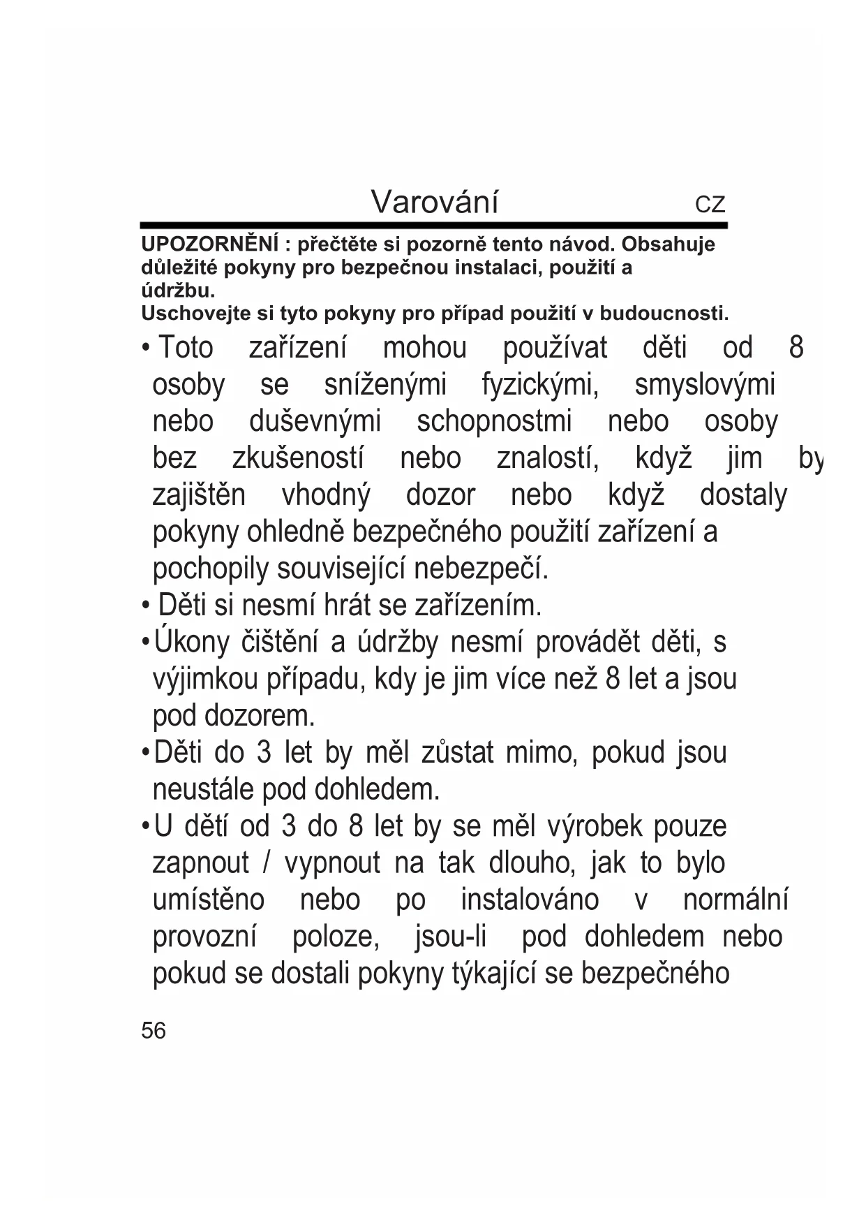 - Udětíod3do8letbysemělvýrobekpouze zapnout / vypnout na tak dlouho, jak to bylo umístěno nebo po instalováno v normální provozní poloze, jsou-li pod dohledem nebo pokudsedostalipokynytýkajícísebezpečného57 používánívýrobku,achápounebezpečí.
