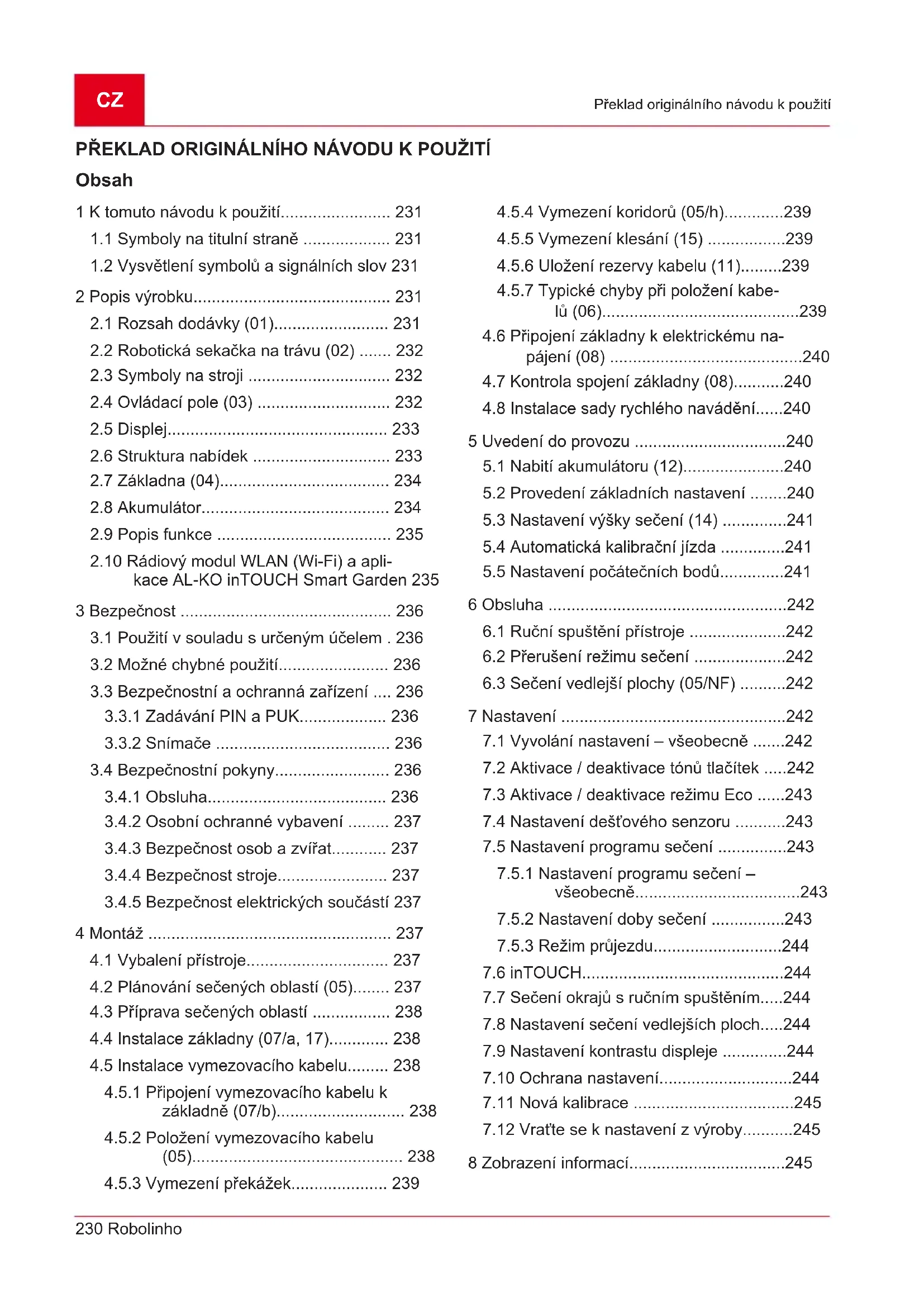 3.4 Bezpečnostní pokyny......................... 236