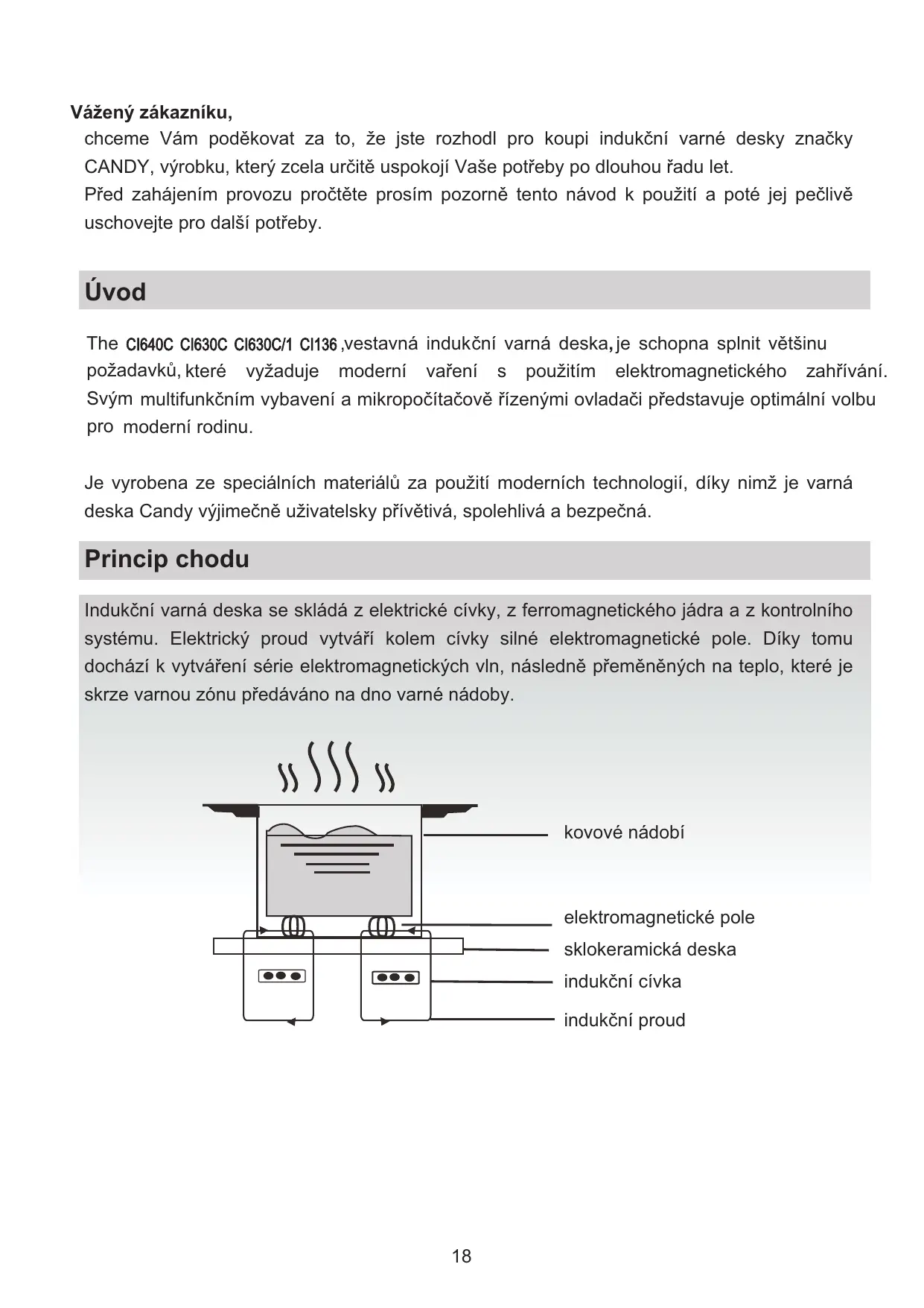 Vážený zákazníku, chceme Vám podČkovat za to, že jste rozhodl pro koupi indukþní varné desky znaþky CANDY, výrobku, který zcela urþitČ uspokojí Vaše potĜeby po dlouhou Ĝadu let. PĜed zahájením provozu proþtČte prosím pozornČ tento návod k použití a poté jej peþlivČ uschovejte pro další potĜeby.