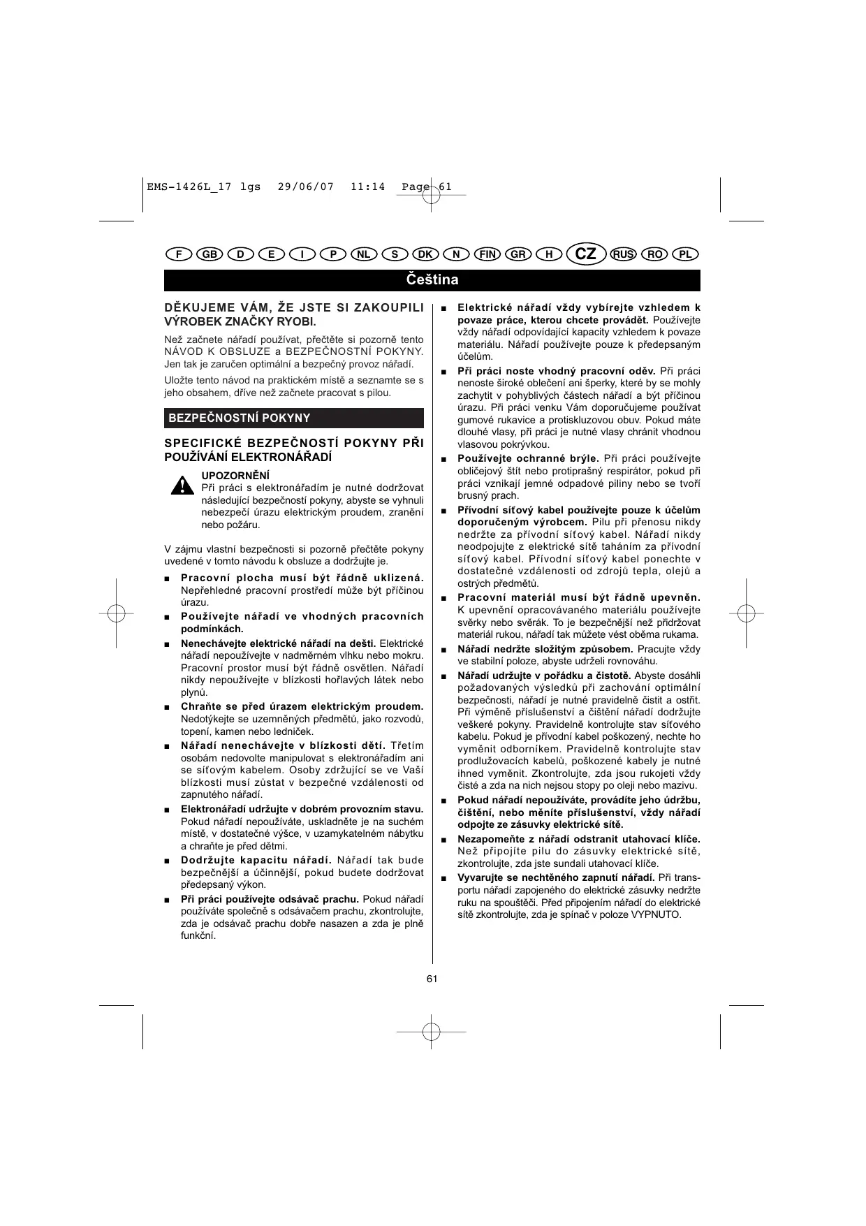 NÁVOD K OBSLUZE EMS-1426L RYOBI