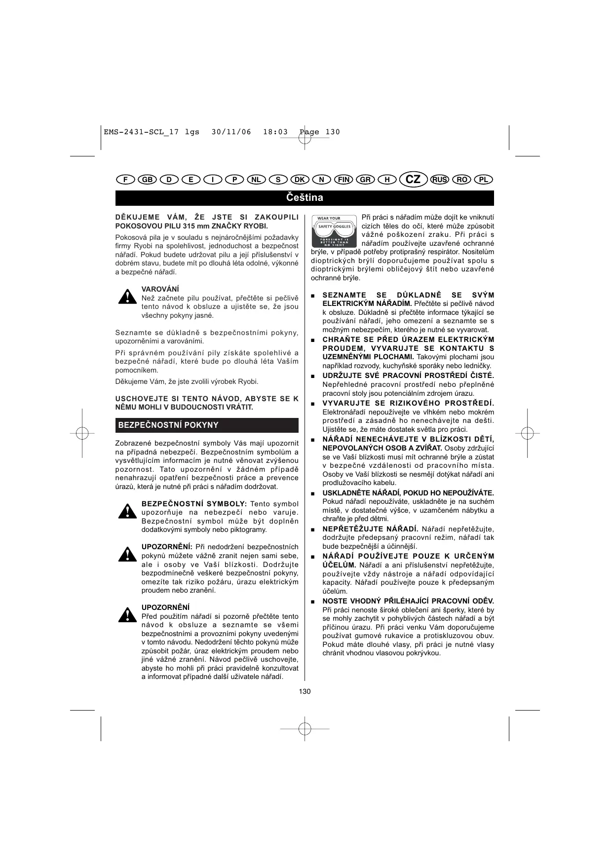 NÁVOD K OBSLUZE EMS-2431SCL RYOBI