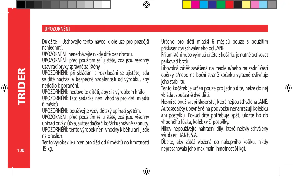 NÁVOD K OBSLUZE PACK TRIDER MATRIX LIGHT JANE