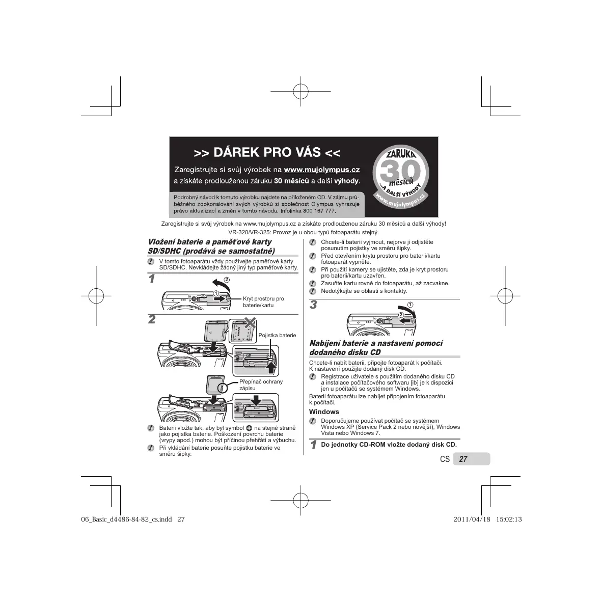 Téléchargez la notice de votre Digitální fotoaparát au format PDF gratuitement ! Retrouvez votre notice VR-325 - OLYMPUS et reprennez votre appareil électronique en main. Sur cette page sont publiés tous les documents nécessaires à l'utilisation de votre appareil VR-325 de la marque OLYMPUS.