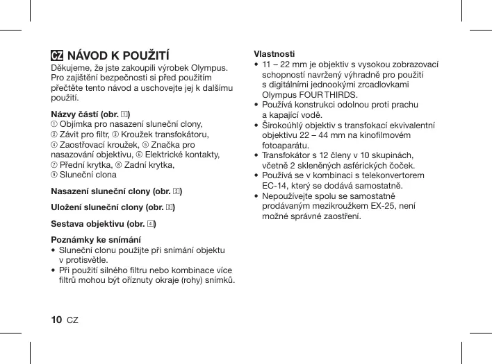 NÁVOD K OBSLUZE ZUIKO DIGITAL 11-22 MM 1:2.8-3.5 OLYMPUS