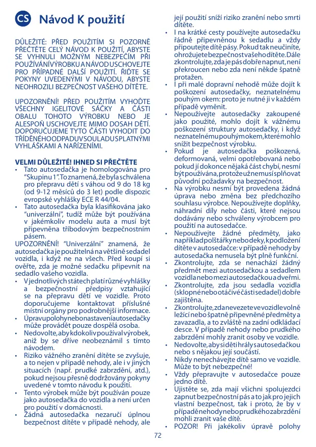 NÁVOD K OBSLUZE XPACE, X-PACE CHICCO