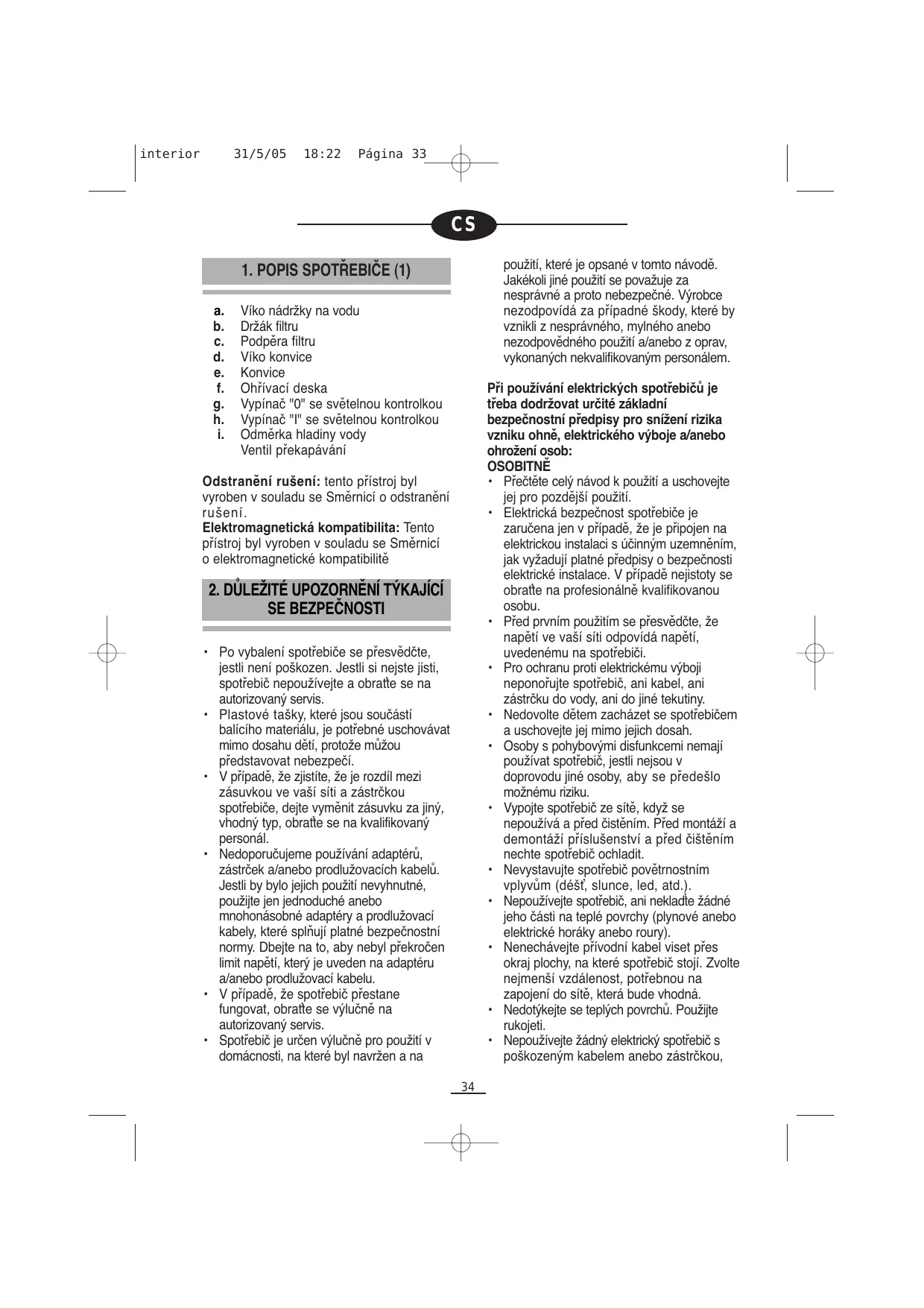- Préd prvním použitím se prěsvěděcte, ze napěti ve vaši siti opodvídá napěti, uvedenému na spotřebici.