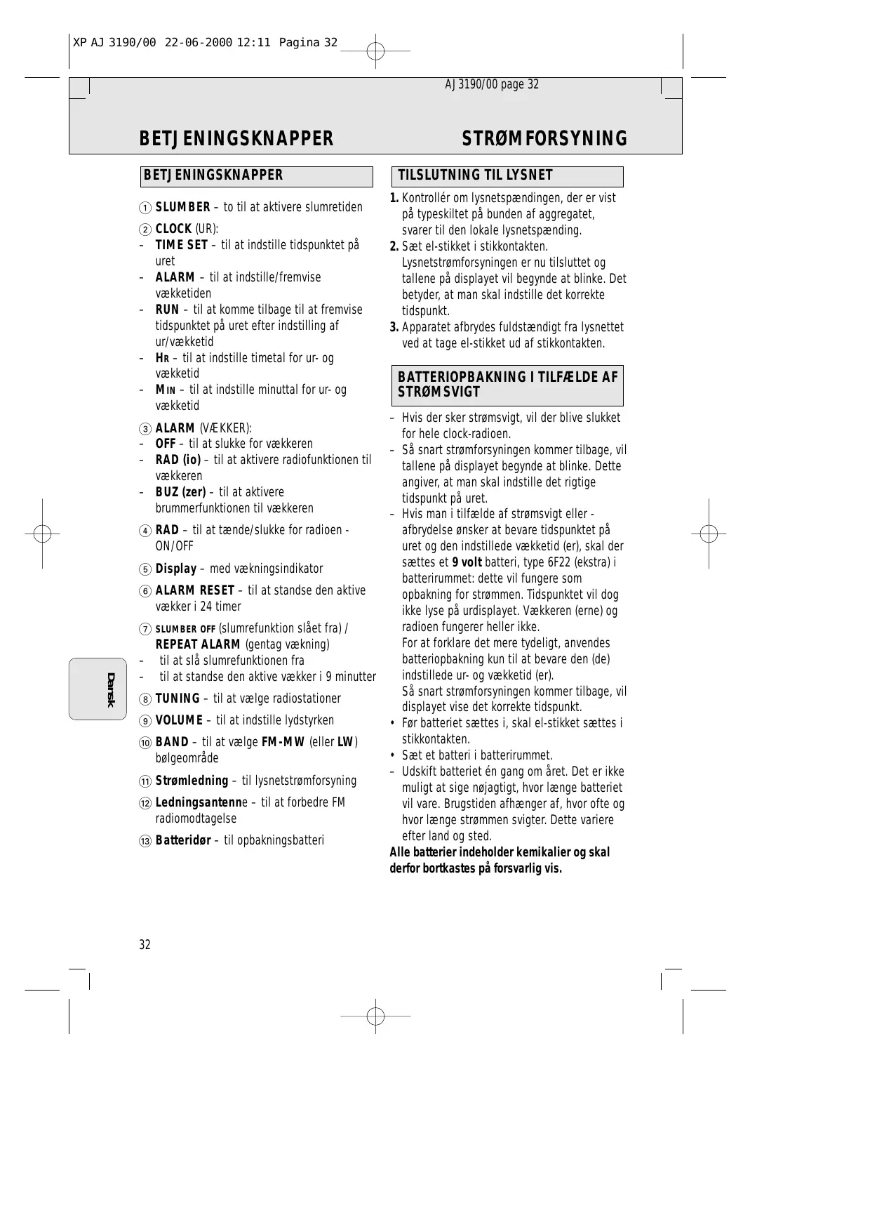 Téléchargez la notice de votre Radiovækkeur au format PDF gratuitement ! Retrouvez votre notice AJ3190 - PHILIPS et reprennez votre appareil électronique en main. Sur cette page sont publiés tous les documents nécessaires à l'utilisation de votre appareil AJ3190 de la marque PHILIPS.
