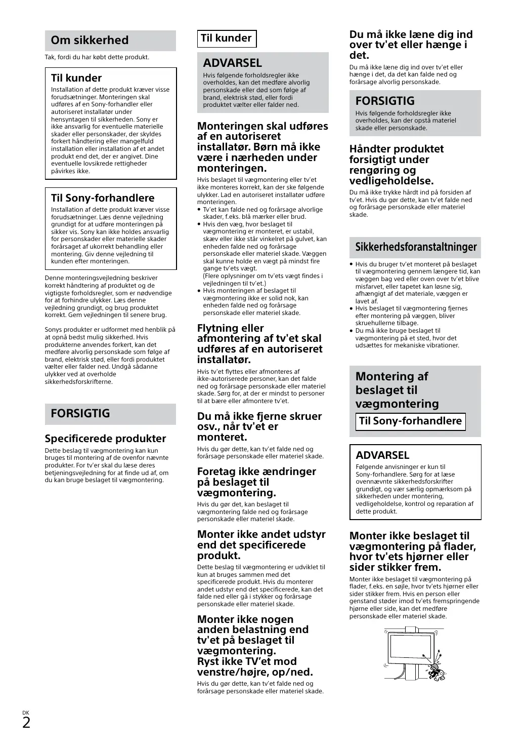 Téléchargez la notice de votre Vægbeslag til TV au format PDF gratuitement ! Retrouvez votre notice SU-WL450 - SONY et reprennez votre appareil électronique en main. Sur cette page sont publiés tous les documents nécessaires à l'utilisation de votre appareil SU-WL450 de la marque SONY.
