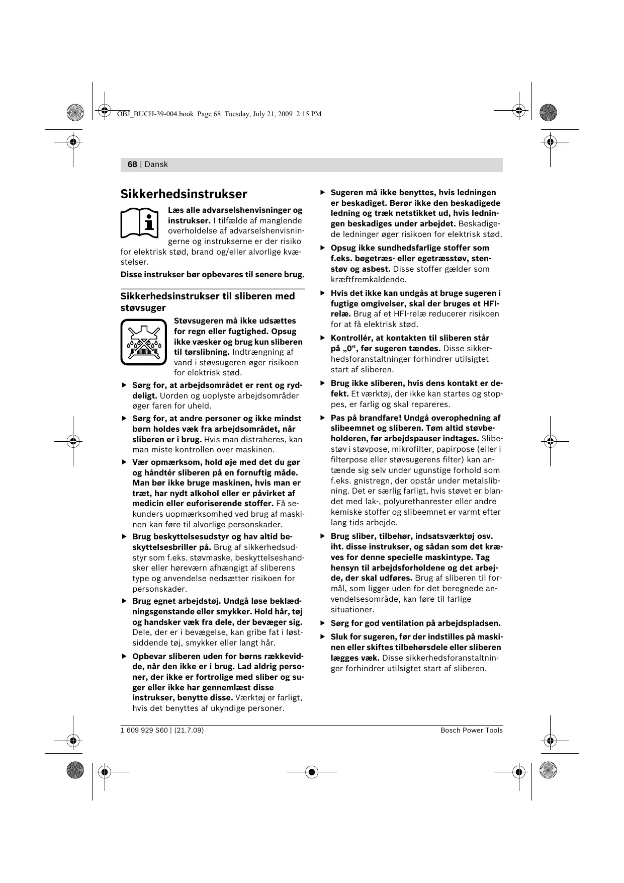 Pas pa brandfare! Undgå overophedning af spliceemnet og silberen. Tøm altid støvbe-holderen, for arbejdspauser indtages. Slibestøv i støvpose, mikrofilter, papirpose (eller i filterpose eller støvsugerens filter) kan an-tænde sig selv under ugunstige forhold som f.eks. gnistregn, der opstår under metalslib-ning. Det er saarlig farligt, hvis støvet er blan-det med lak-, polyurethanrester aller andre kemiske stoffer og spliceemnet er varmt after lang tids arbejde.