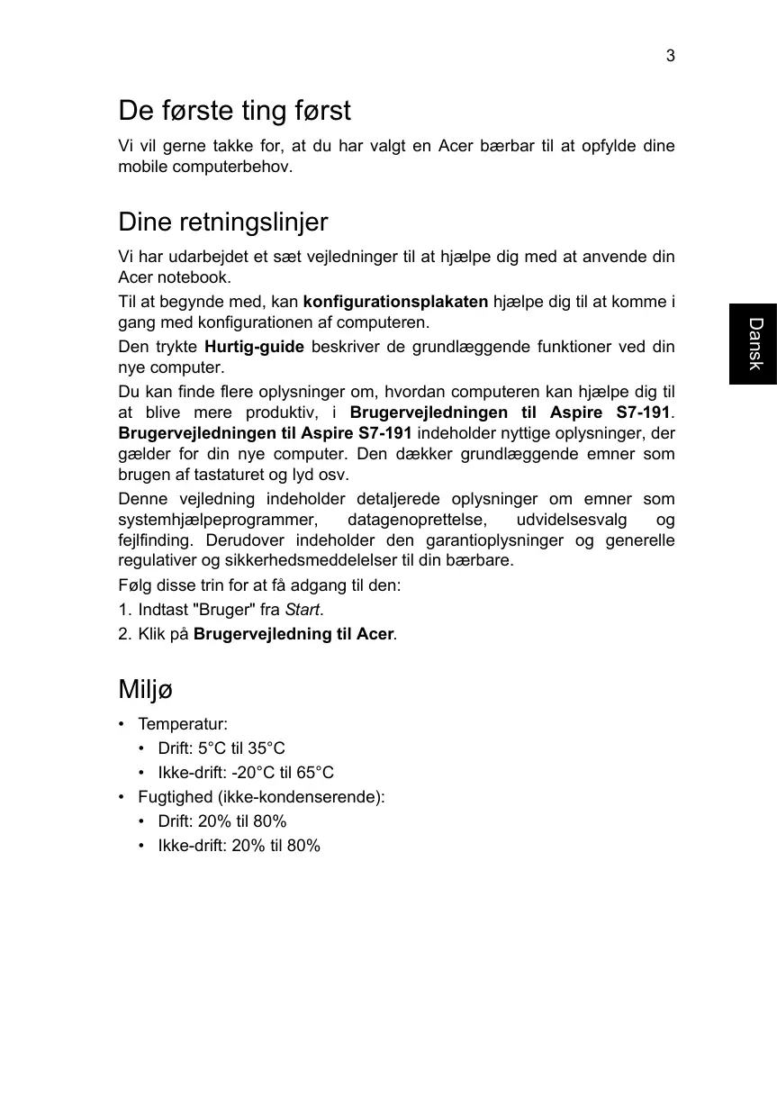 BRUGSANVISNING ASPIRE S7-191 ACER