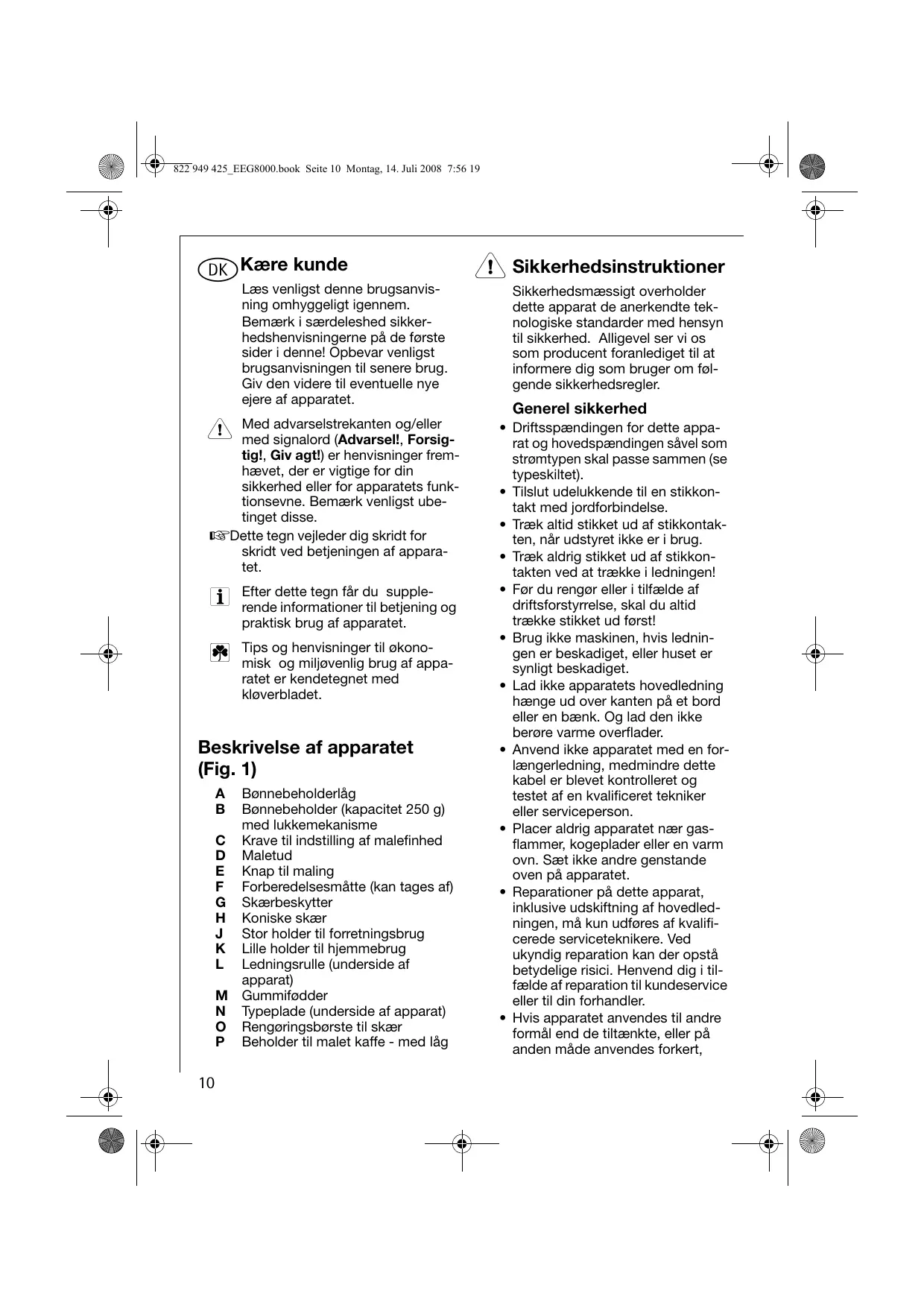 Beskrivelse af apparatet (Fig. 1)