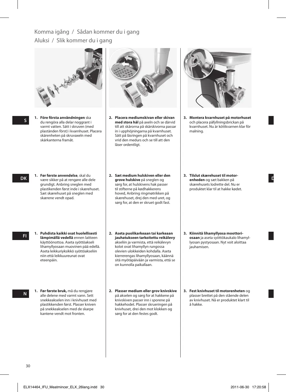 og tør dem af med det samme. Tør motorenheden af udvendigt med en fugtig klud. Bemærk! Smør af og til den 4-bladede knivenhed og hulskiverne med vegetabilsk olie.