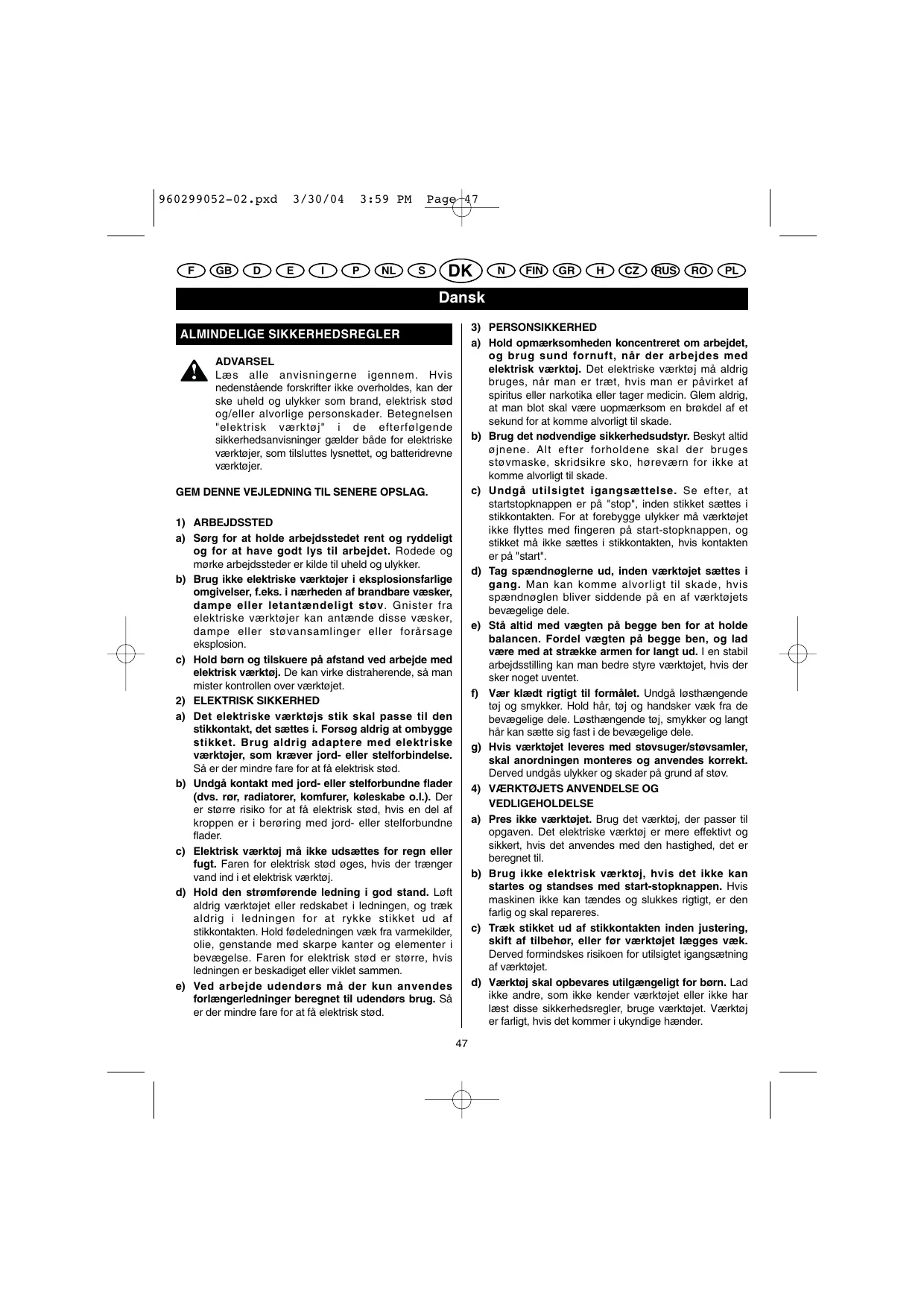 6) RÉPARATIONS a) Les réparations doivent être effectuées par un technicien qualifié et avec des pièces de rechange d'origine uniquement. Vous pourrez ainsiutiliser votre outil électrique en toute sécurité.