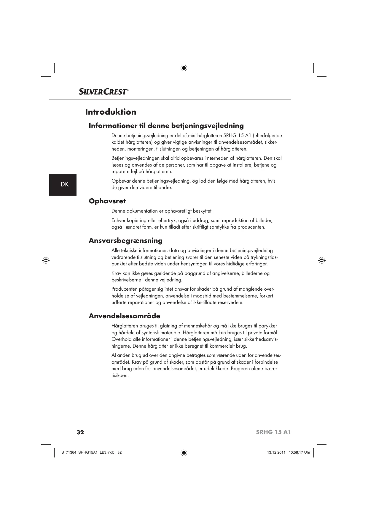 BRUGSANVISNING SRHG 15 A1 SILVERCREST