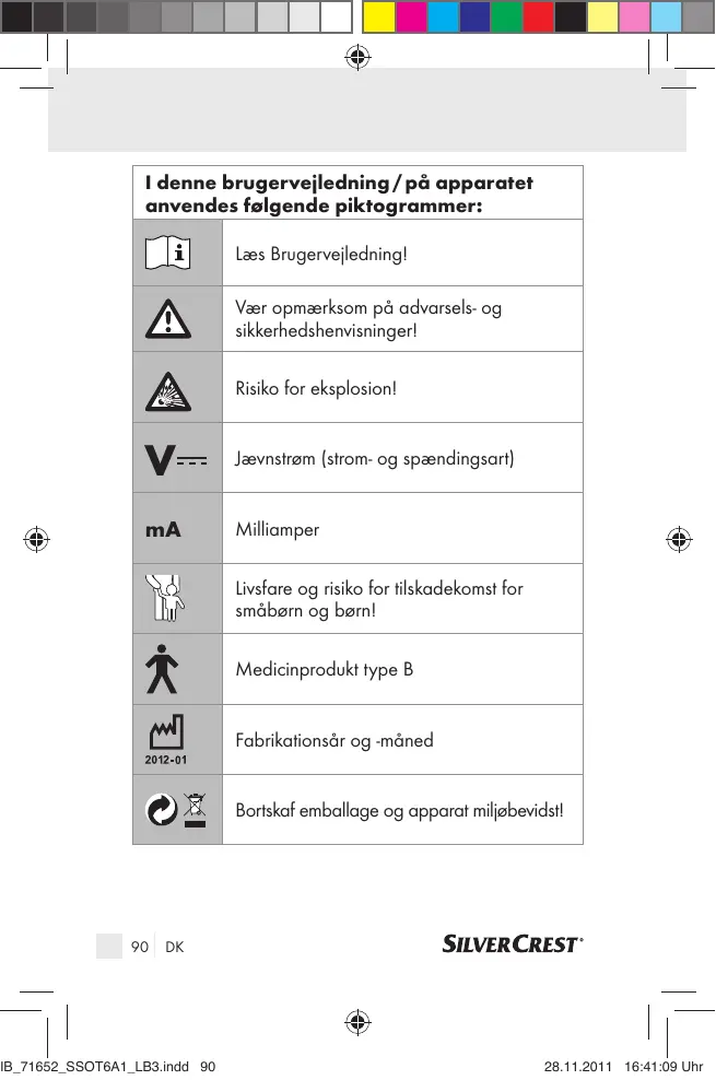 1 denne brugerveiledning/pà apparatet anvendes falgende piktogrammer: